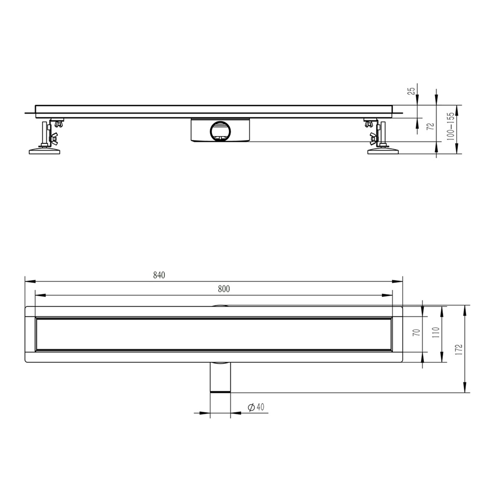 трап с поворотным сифоном на 360°, опоры регулируемые по высоте, крюк для извлечения решетки, переходник Ø40мм*Ø50мм, гидроизолирующая лента, грязеуловитель