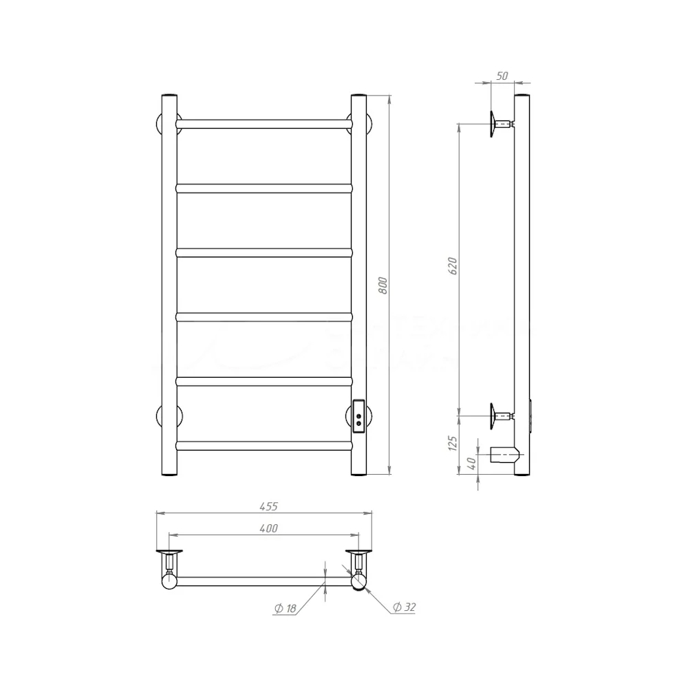 Полотенцесушитель Аспект Пэк сп 1 80х40 белый ВГП. Коллекция: Аспект Пэк сп 1 серия. Тип: электрический. Форма: лесенка. Мощность (Вт): не более 100Вт. Количество перекладин: 6. Материал: сталь. Подключение: скрытое электрическое соединение/электропровод с вилкой. Дополнительная информация: выключатель с таймером на 2, 4 и 6 часов работы и терморегулятором встроен в коллектор полотенцесушителя.