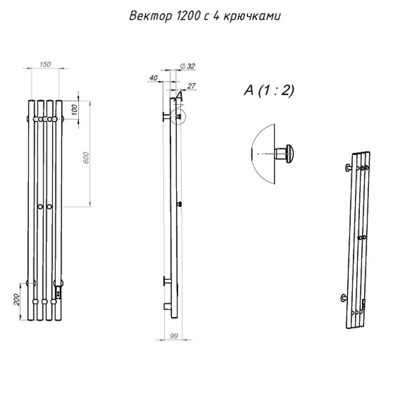 Полотенцесушитель Пэк сп Вектор 120*15 черный ВГП. Коллекция: Пэк сп Вектор. Тип: электрический. Форма: нестандартная. Мощность (Вт): не более 100Вт. Количество перекладин: 4. Материал: сталь. Подключение: скрытое электрическое соединение/электропровод с вилкой. Дополнительная информация: выключатель с таймером на 2, 4 и 6 часов работы и терморегулятором встроен в коллектор полотенцесушителя.