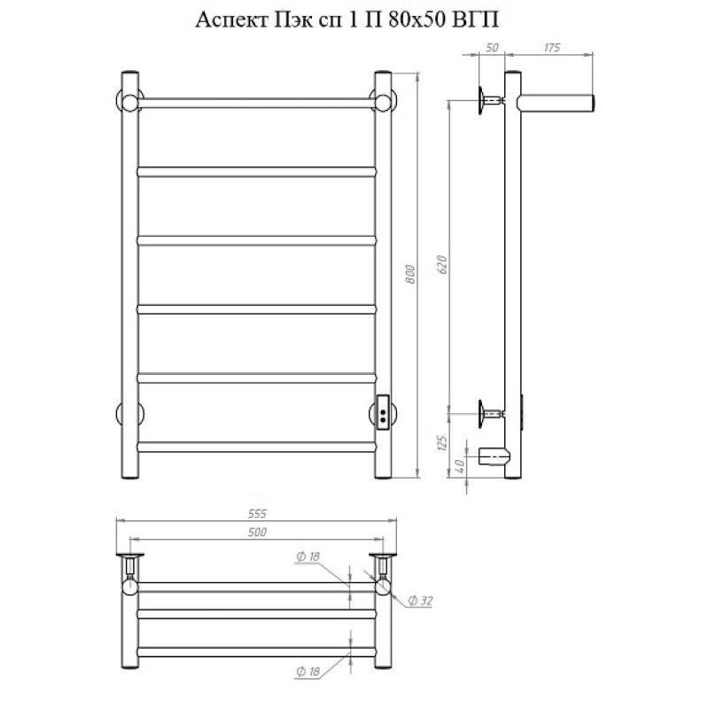 Полотенцесушитель Аспект Пэк сп 1 П 80х50 белый ВГП. Коллекция: Аспект Пэк сп 1 серия. Тип: электрический. Форма: лесенка. Мощность (Вт): не более 100Вт. Количество перекладин: 6. Материал: сталь. Подключение: скрытое электрическое соединение/электропровод с вилкой. Дополнительная информация: выключатель с таймером на 2, 4 и 6 часов работы и терморегулятором встроен в коллектор полотенцесушителя.