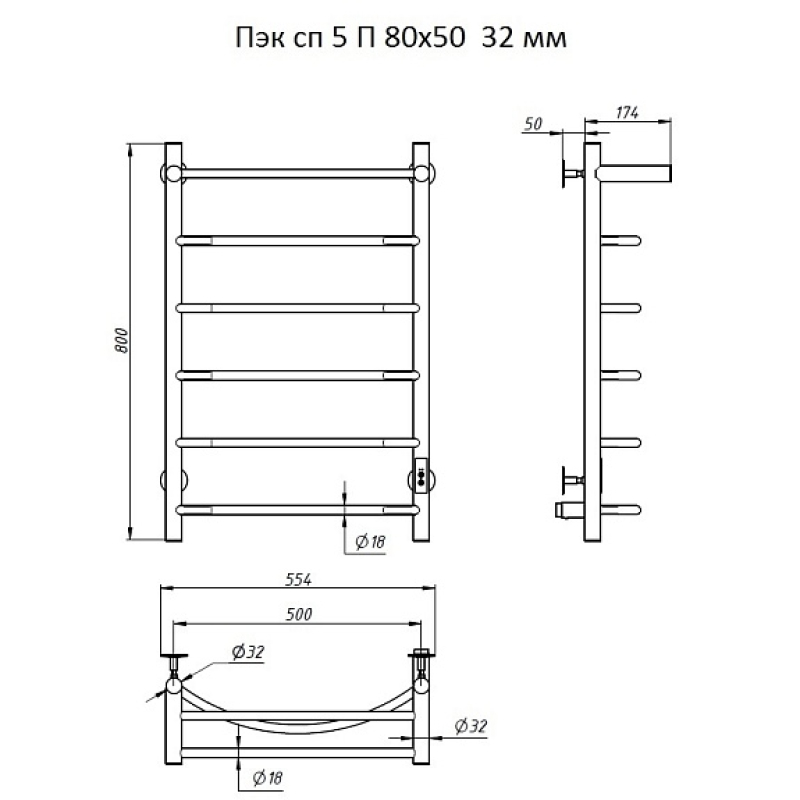 Полотенцесушитель Пэк сп 5 П 80х50 32 мм. Коллекция: ПЭК сп 5. Тип: электрический. Форма: лесенка. Мощность (Вт): не более 100Вт. Количество перекладин: 5. Материал: нержавеющая сталь AISI 201. Подключение: скрытое электрическое соединение/электропровод с вилкой.