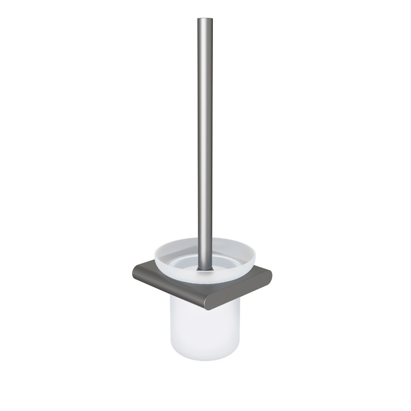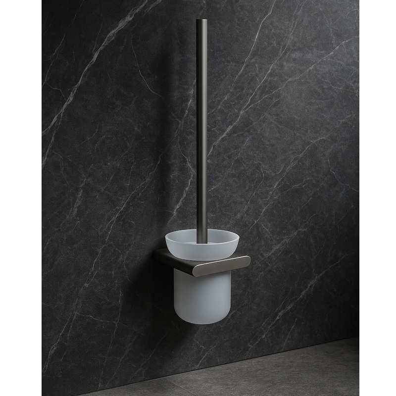 Ерш из вороненой стали с матовым стеклом: прочность и надежность. Щетинки качественно очищают каждый уголок унитаза, антиследовое покрытие сохраняет аккуратный вид корпуса.