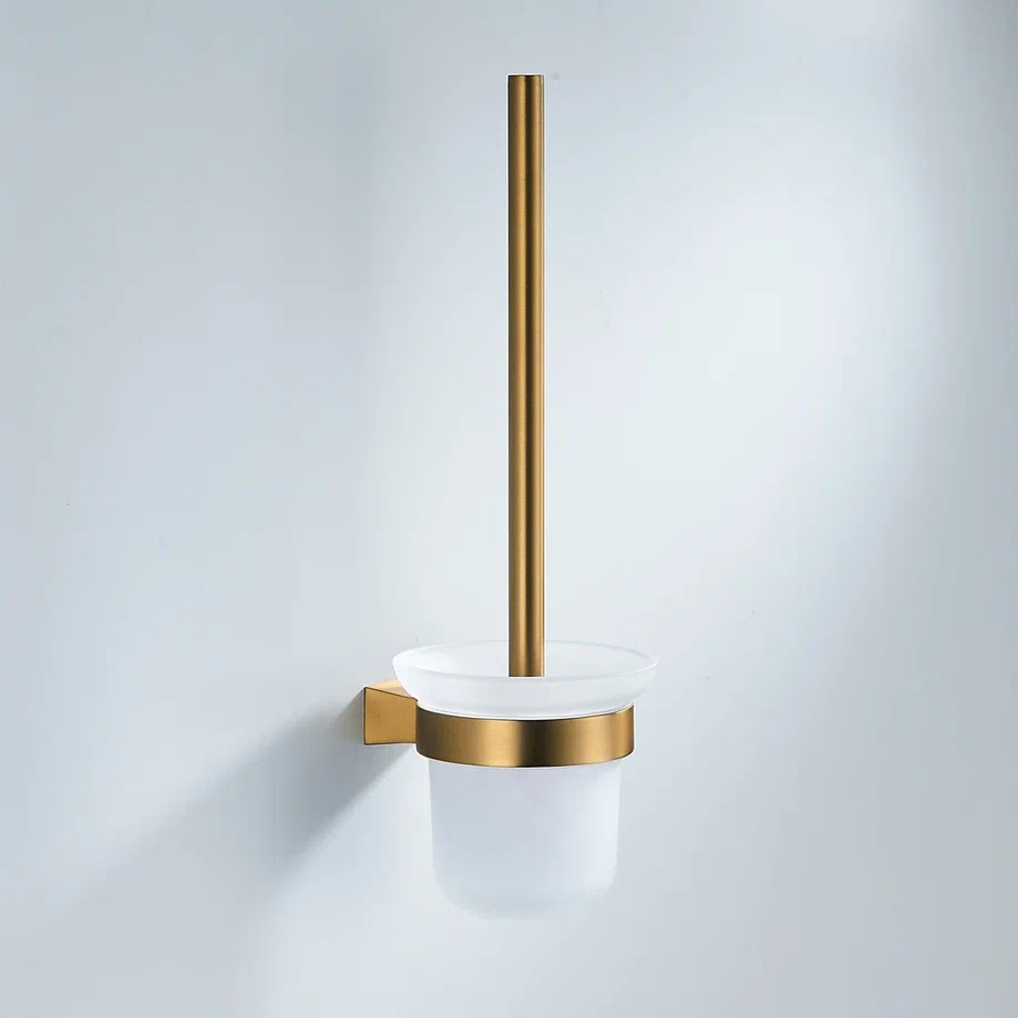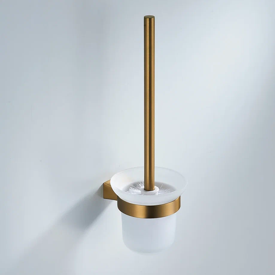 Ершик для унитаза Shevanik SG5700G в современном цвете "золотой сатин" (брашированное золото) — это безупречное сочетание функциональности и современного дизайна для вашей ванной комнаты. Элегантная конструкция объединяет в себе прочный держатель из нержавеющей стали и стильный стакан из матового стекла, создавая гармоничный и лаконичный образ. Современный минималистичный дизайн делает этот аксессуар не просто необходимым предметом гигиены, но и стильным элементом интерьера, который прекрасно впишется в любой дизайн ванной комнаты. Настенный монтаж обеспечивает простоту установки, а комплект, включающий как саморезы, так и дюбели, позволяет выбрать оптимальный способ крепления в зависимости от типа стены. Ершик Shevanik не только практичен в использовании, но и служит изящным дополнением к общему оформлению помещения, подчеркивая ваш безупречный вкус.