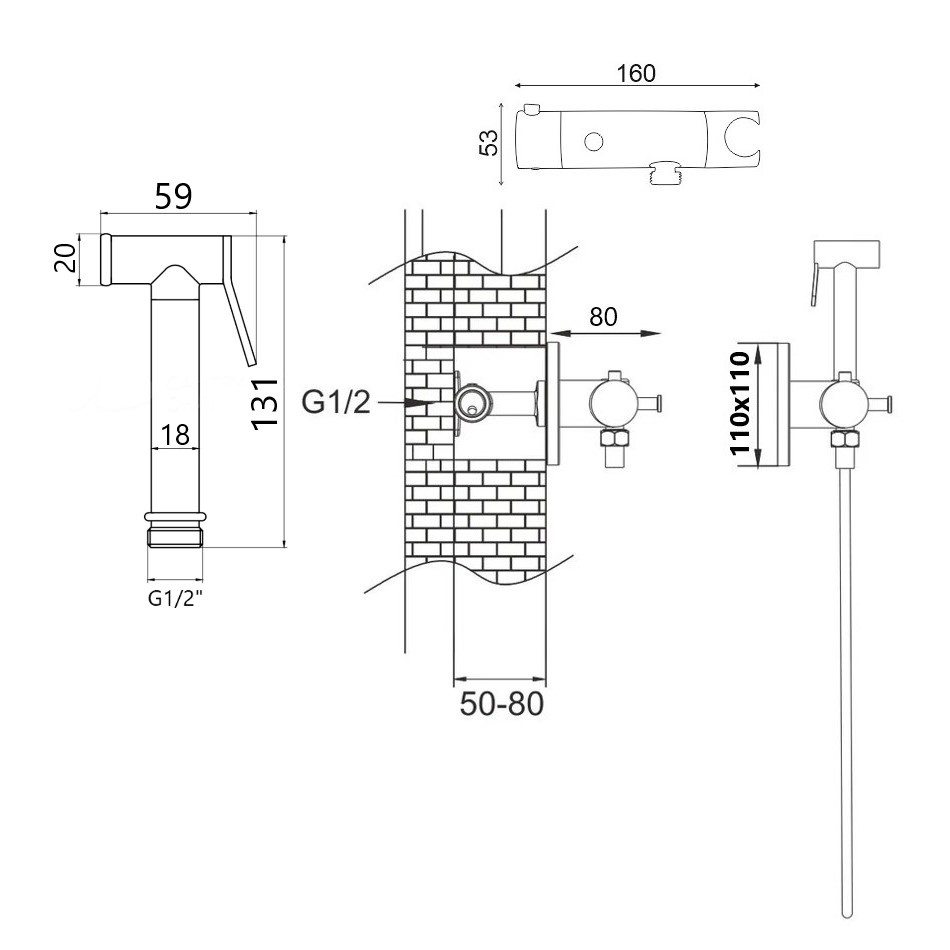 Гигиенический душ с термостатом Rose R915H, черный. Управление: термостат. Материал: латунь. Монтаж: внутренний (скрытый). На корпусе гигиенического душа расположен крючок для полотенца.