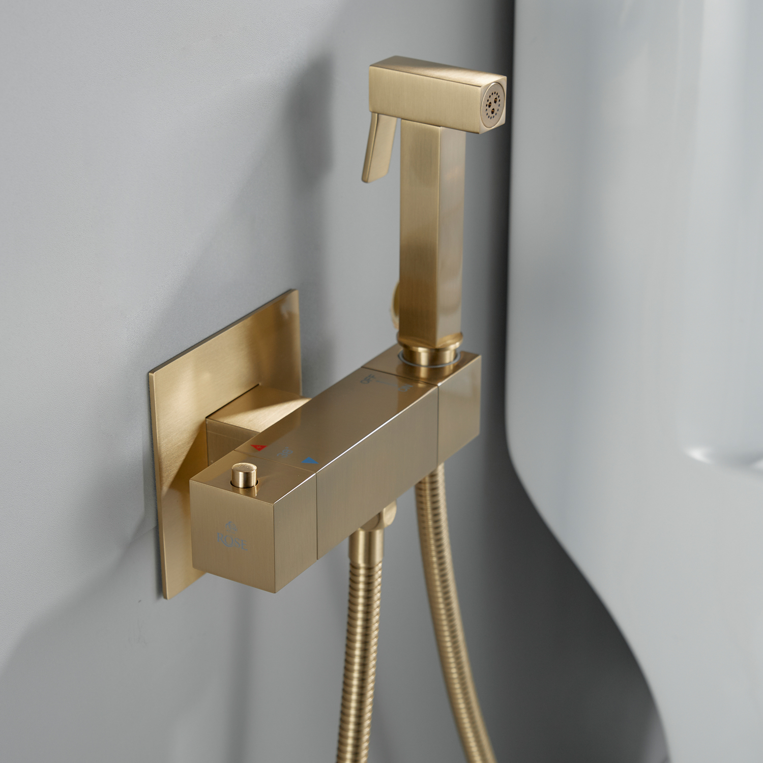Гигиенический душ с термостатом Rose R965G, золотой сатин