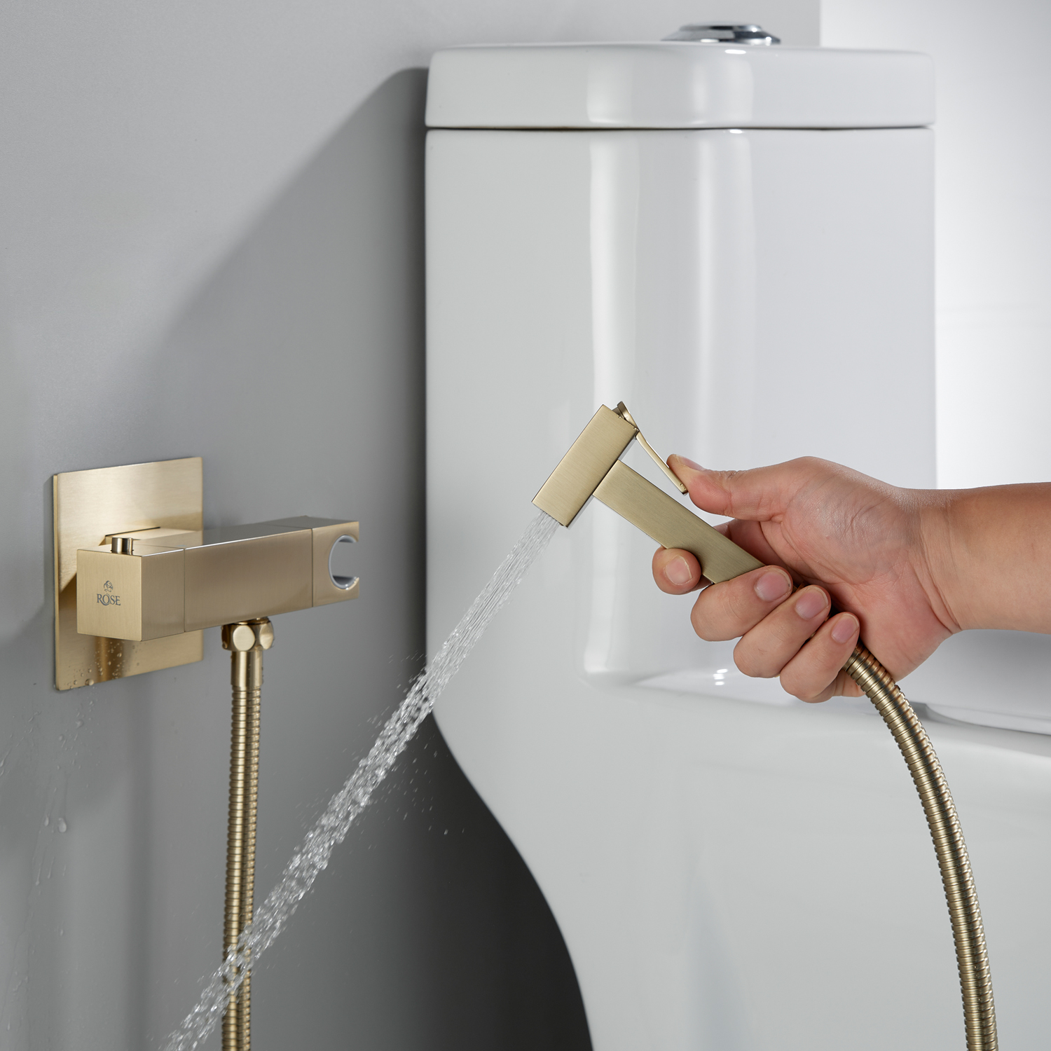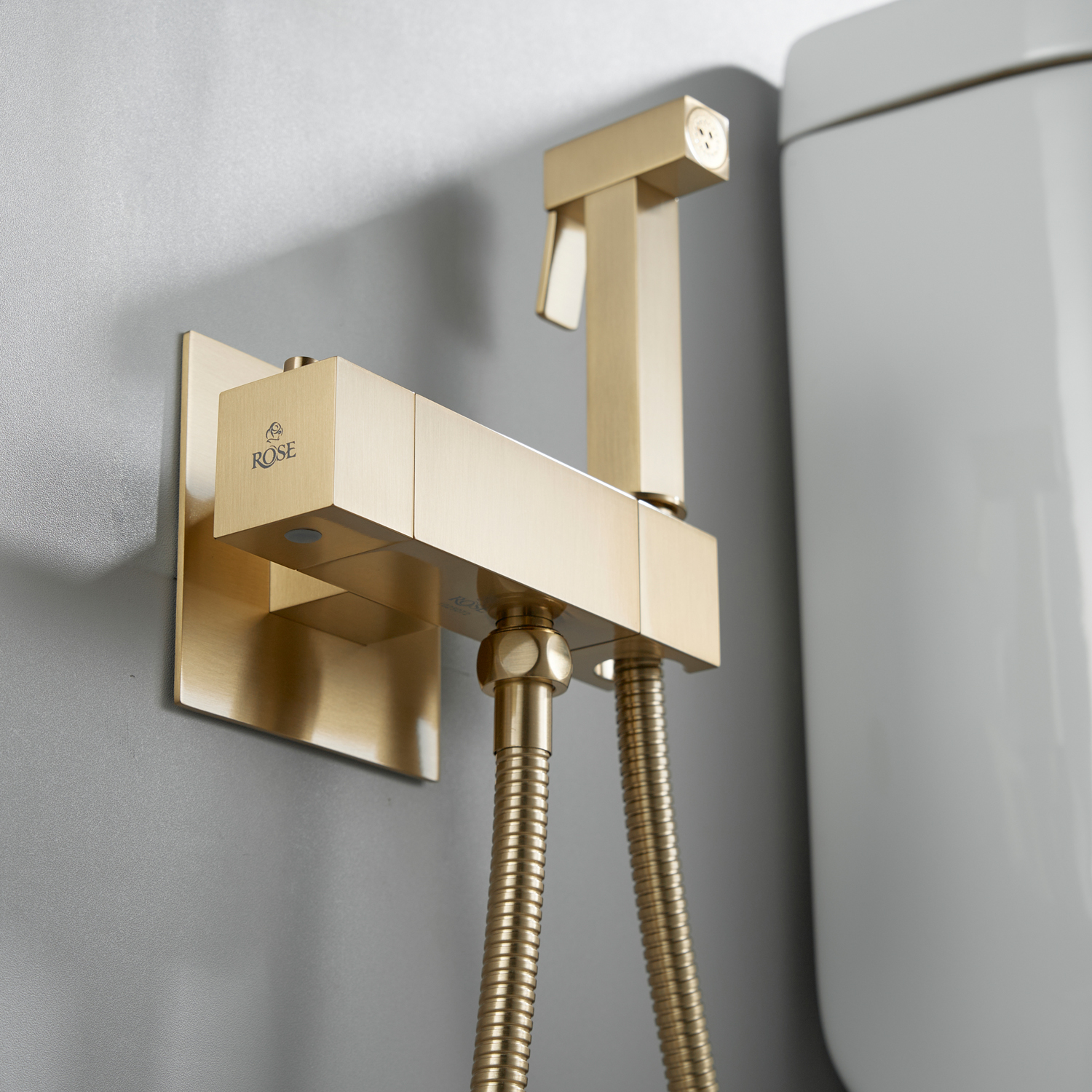 Гигиенический душ со смесителем Rose R965G в цвете "золотой сатин" (матовое брашированное золото) — воплощение современного подхода к комфорту и безопасности в ванной комнате. Латунный корпус гарантирует исключительную долговечность: этот благородный материал устойчив к коррозии и температурным перепадам, сохраняя безупречный внешний вид даже при интенсивной эксплуатации в условиях высокой влажности.
