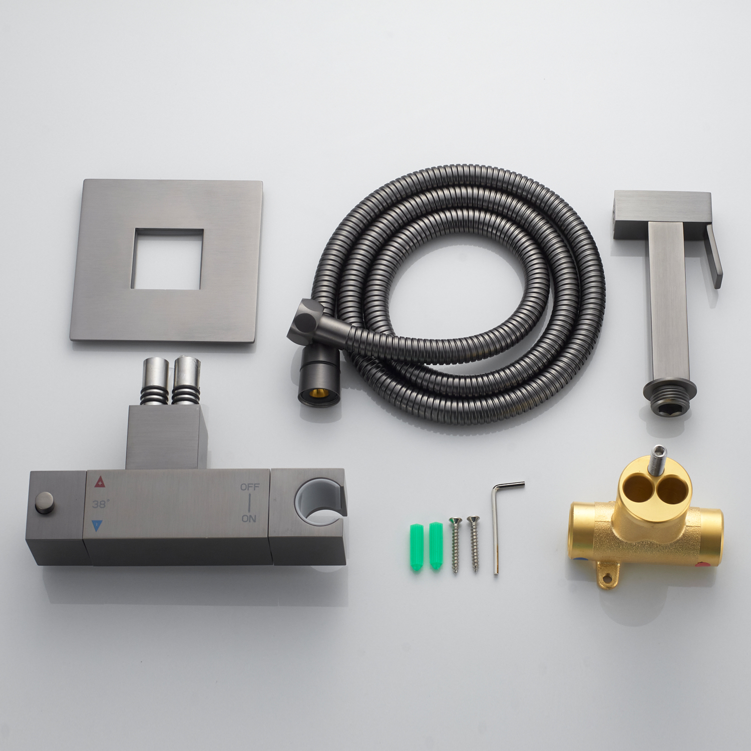Гигиенический душ с термостатом Rose R965T, оружейная сталь