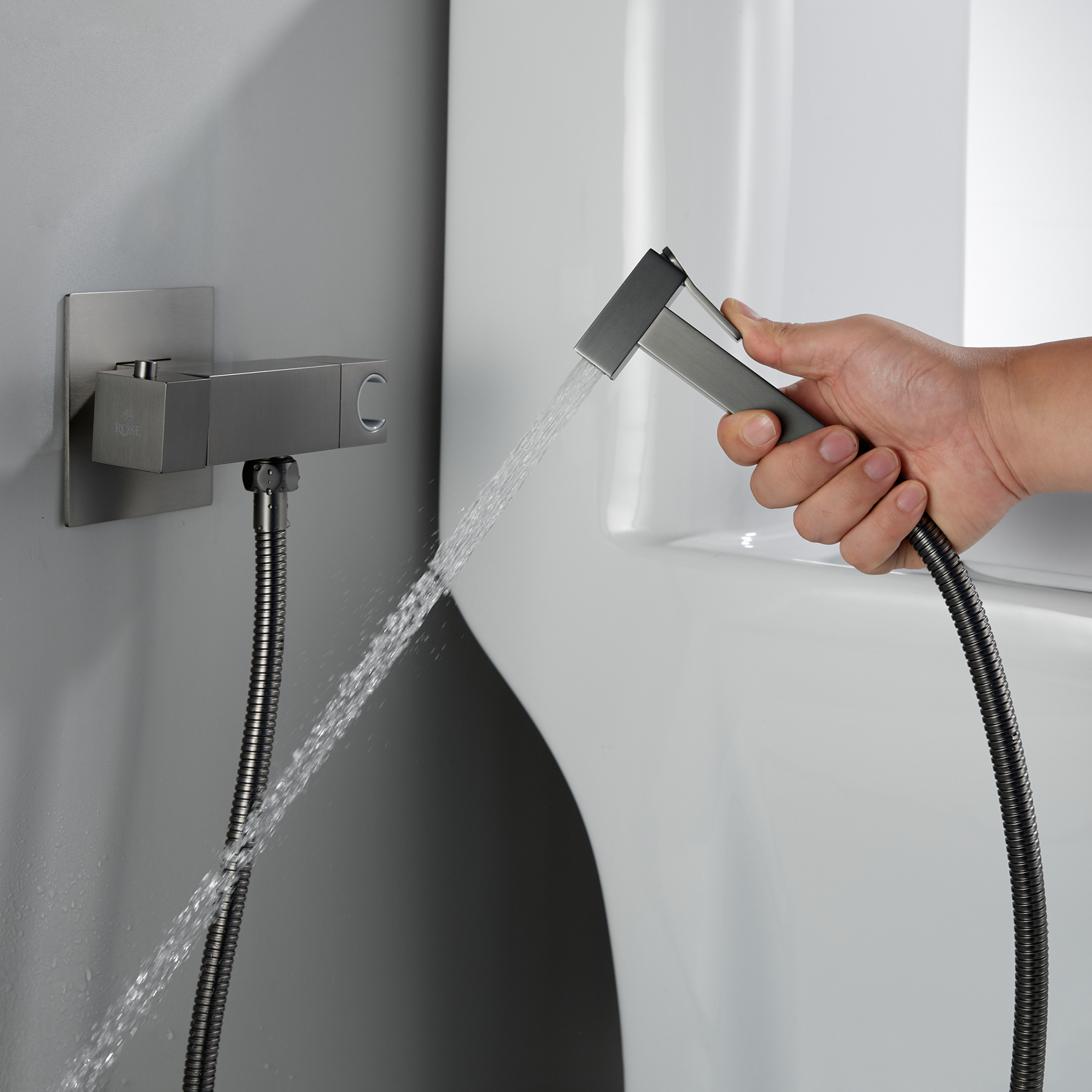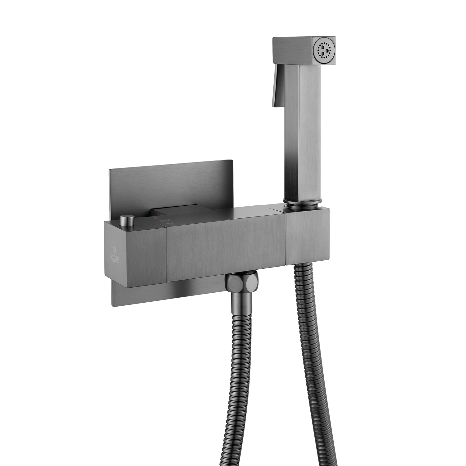Гигиенический душ со смесителем Rose R965T в цвете "оружейная сталь" — воплощение современного подхода к комфорту и безопасности в ванной комнате. Латунный корпус гарантирует исключительную долговечность: этот благородный материал устойчив к коррозии и температурным перепадам, сохраняя безупречный внешний вид даже при интенсивной эксплуатации в условиях высокой влажности.