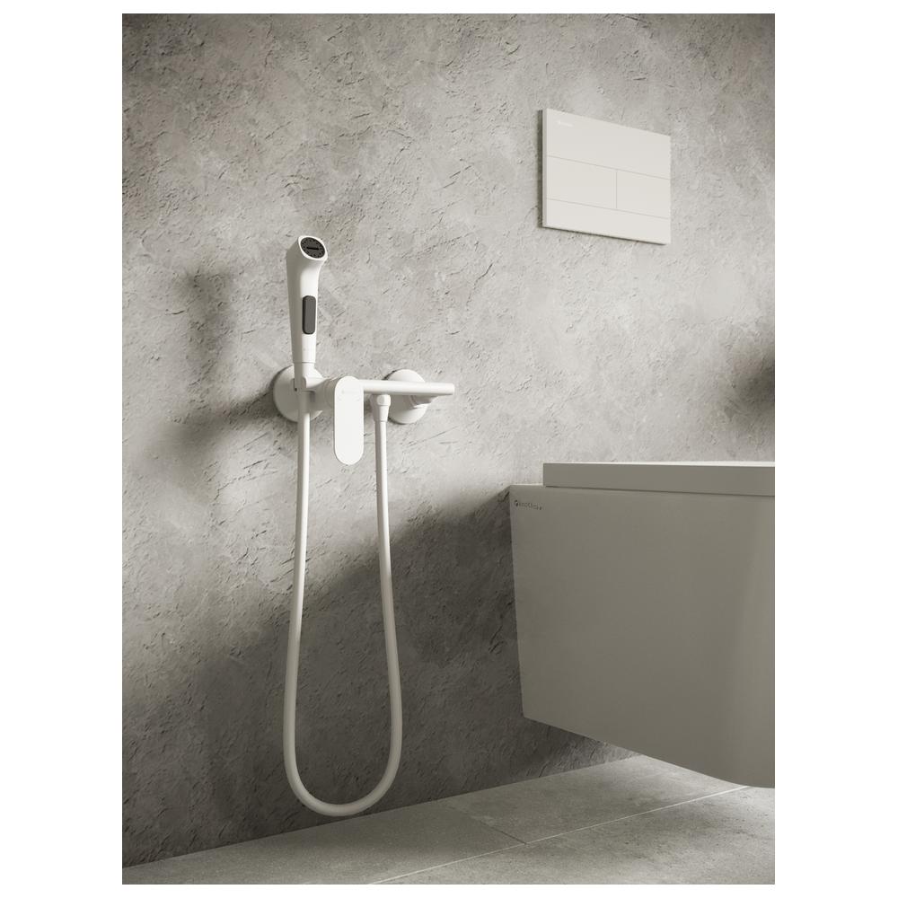 Корпус гигиенического душа со смесителем Knotlor в матовом белом цвете выполнен из латуни, дизайнерская лейка и пластика. Наружный монтаж и современный дизайн делают модель универсальным решением для светлых интерьеров.