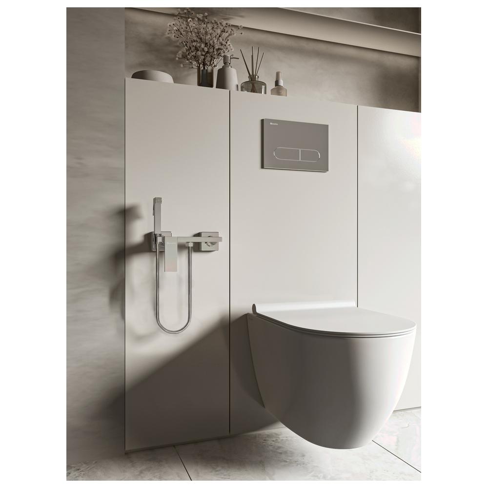 Гигиенический душ Knotlor MIST с наружным монтажом выполнен в глянцевом хроме и имеет строгие прямоугольные геометрические формы. Модель оснащена удобной полочкой для телефона, а гладкий ПВХ-шланг устойчив к перегибам и заломам, что повышает комфорт ежедневного использования.