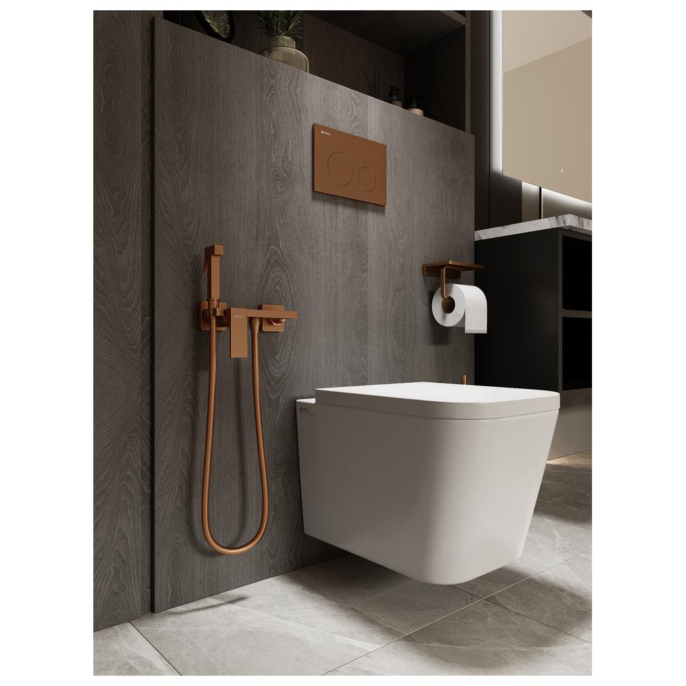 Бронзовая модель гигиенического душа Knotlor серии MIST сочетает наружный монтаж и четкие прямоугольные формы. Полочка для телефона добавляет функциональности, а гладкий шланг из ПВХ устойчив к заломам и перекручиванию.