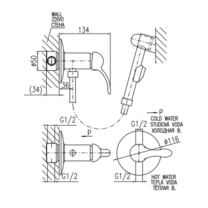 смеситель, лейка, держатель лейки, шланг, внутренняя часть