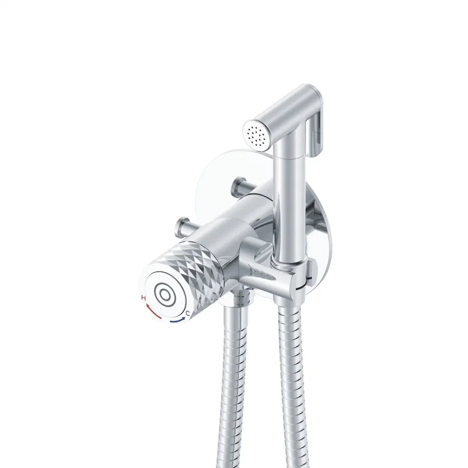 Гигиенический душ со смесителем Rose R225, хром. Управление: нажимное (порционное). Материал: латунь. Монтаж: внутренний (скрытый). На корпусе гигиенического душа расположен крючок для полотенца.