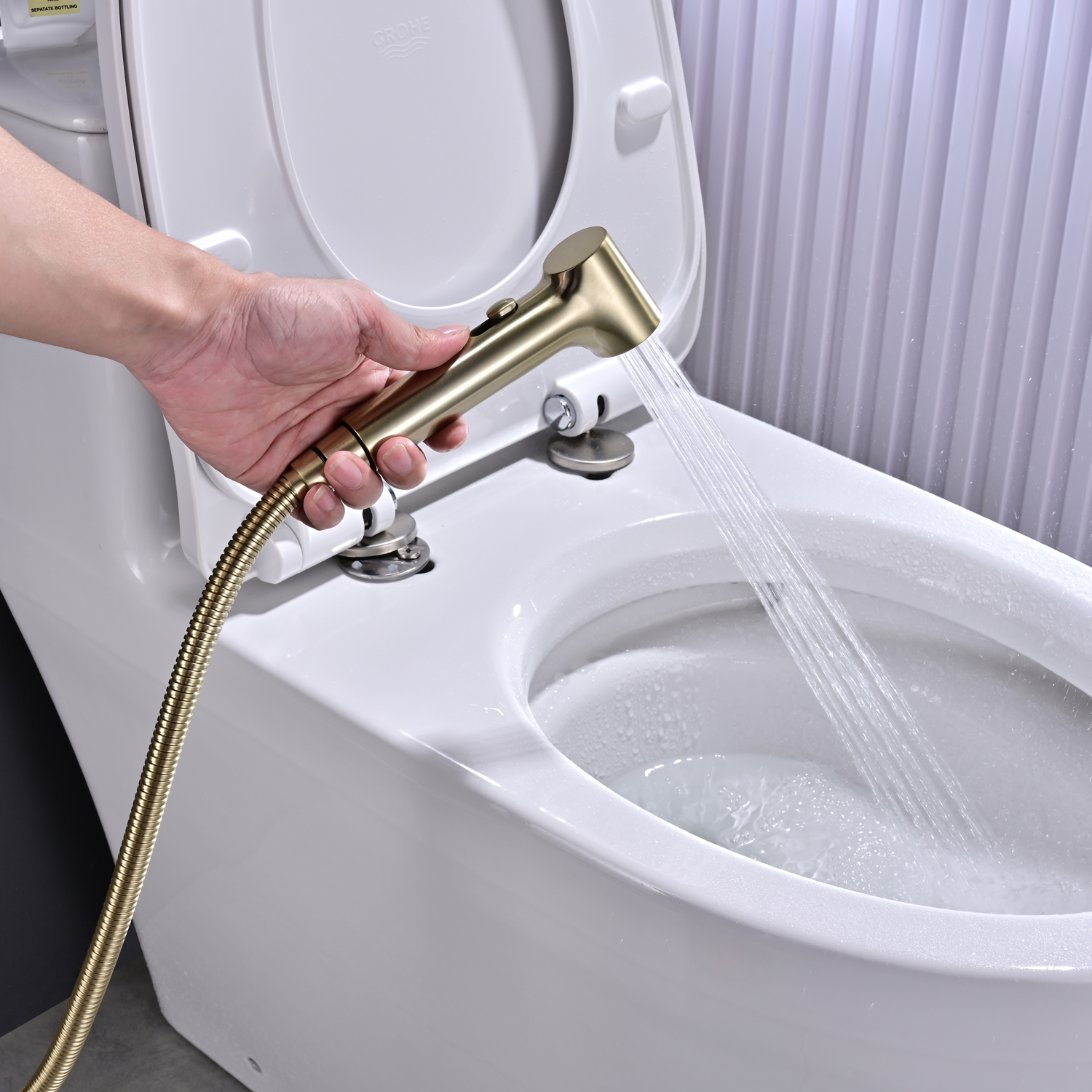 Гигиенический душ Rose R235G в цвете золотой сатин (матовое полированное золото) — это стильное и функциональное решение для вашей ванной комнаты. Латунный корпус обеспечивает прочность и долговечность, а керамический картридж и рычажное управление гарантируют плавное и точное регулирование температуры и напора воды.