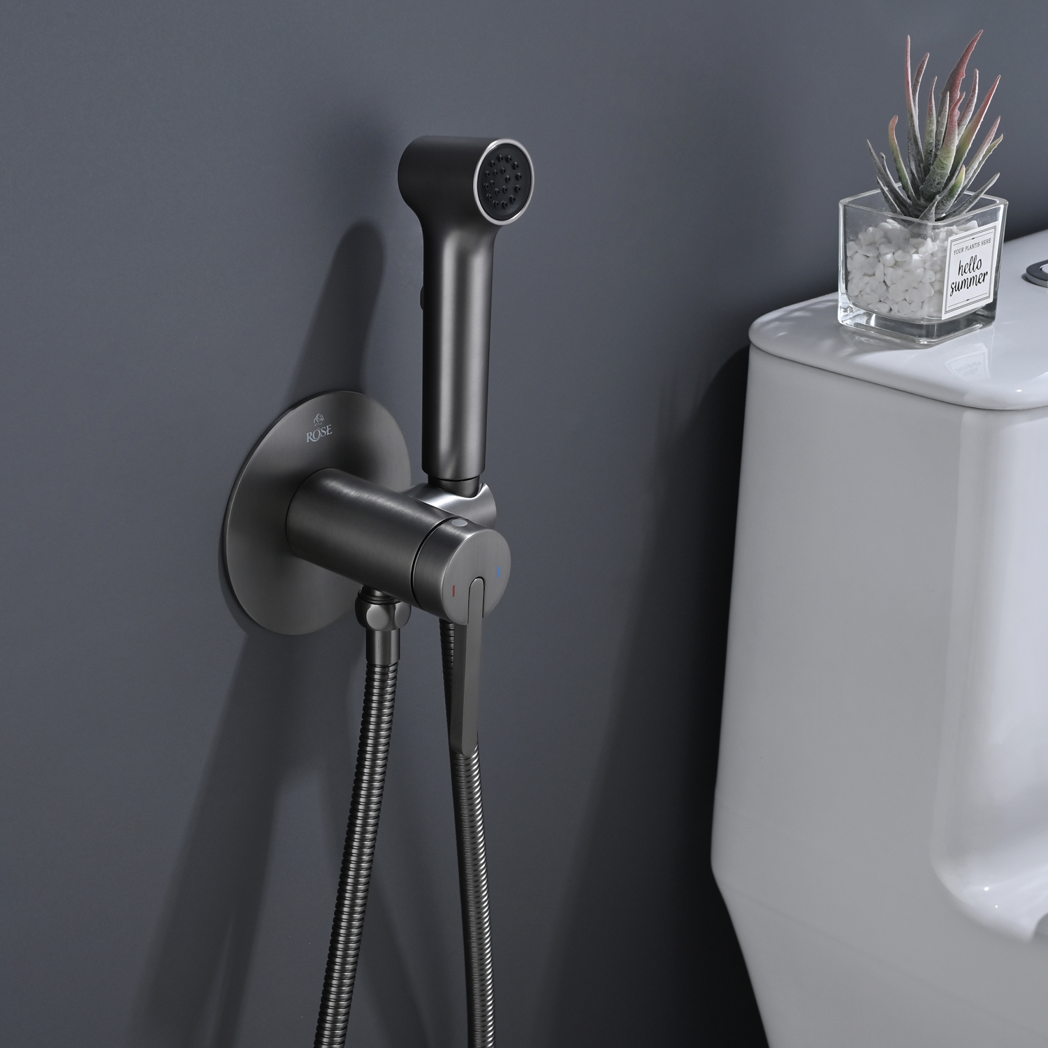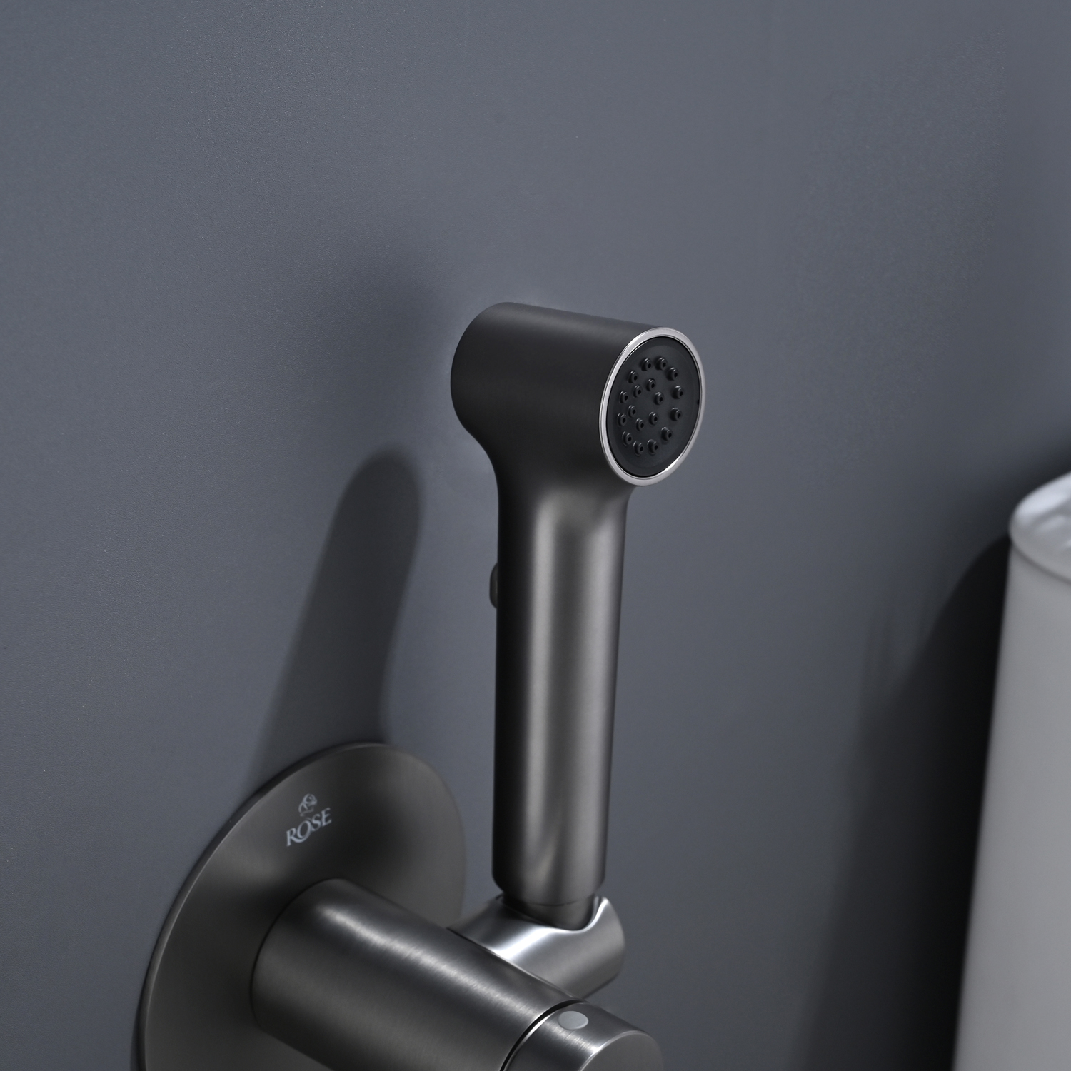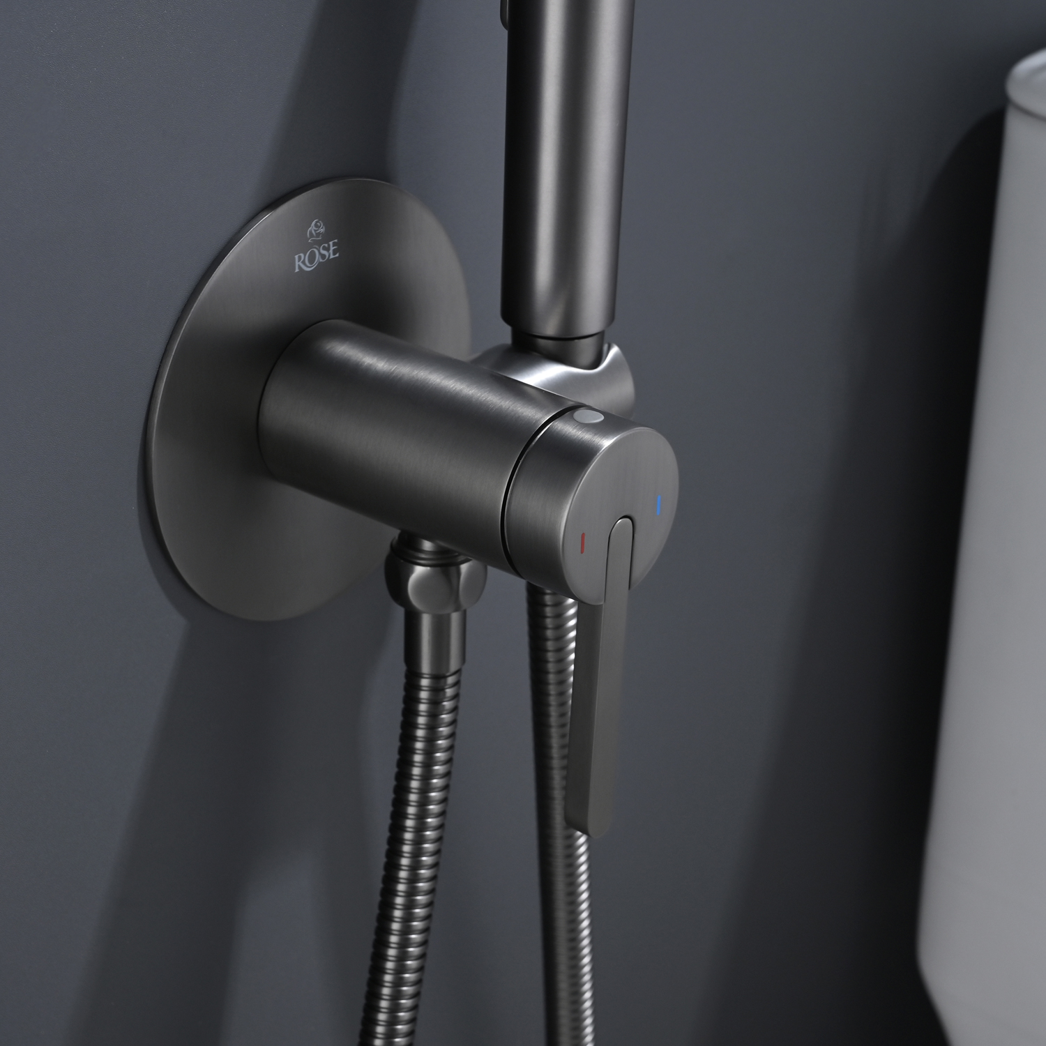 Гигиенический душ Rose R235T в модном цвете "оружейная сталь" — это стильное и функциональное решение для вашей ванной комнаты. Латунный корпус обеспечивает прочность и долговечность, а керамический картридж и рычажное управление гарантируют плавное и точное регулирование температуры и напора воды.