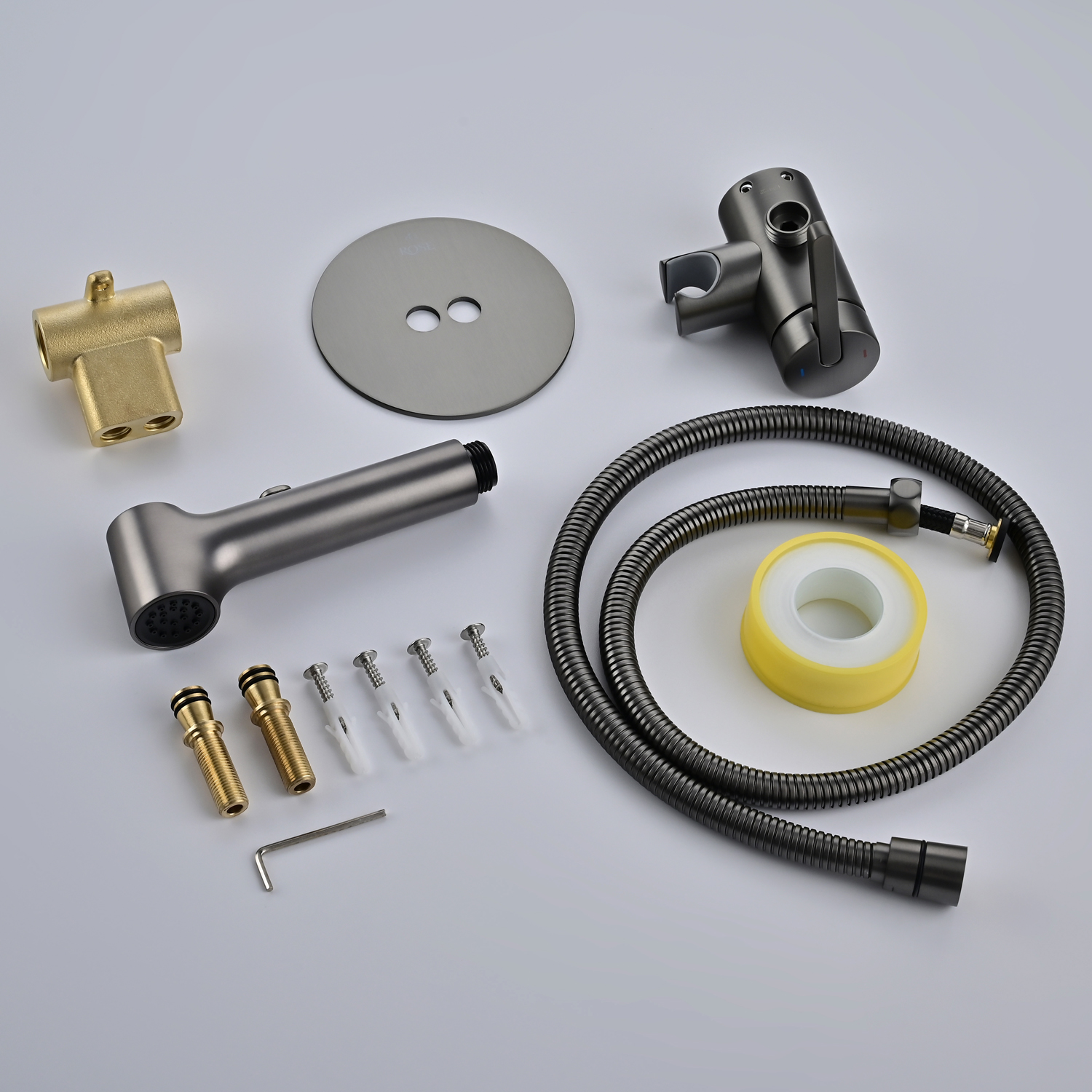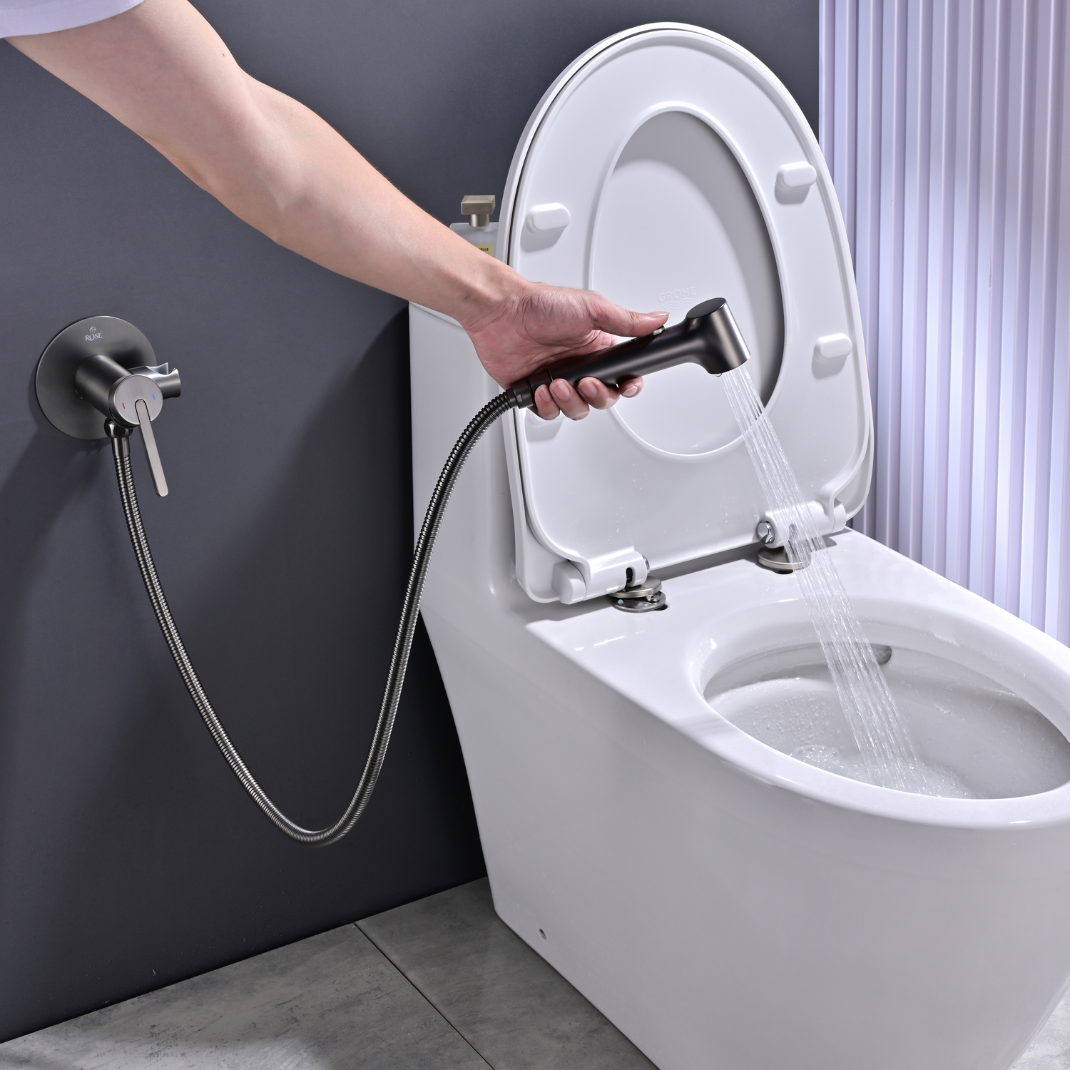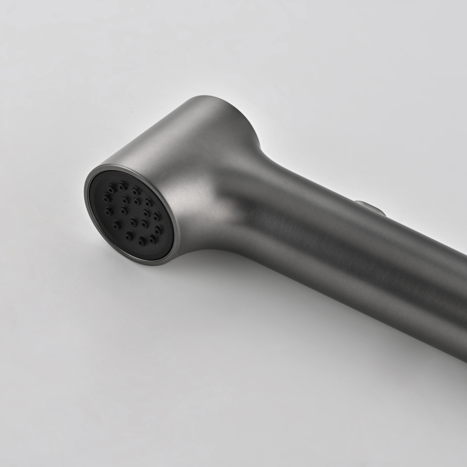 Гигиенический душ Rose R235T в модном цвете "оружейная сталь" — это стильное и функциональное решение для вашей ванной комнаты. Латунный корпус обеспечивает прочность и долговечность, а керамический картридж и рычажное управление гарантируют плавное и точное регулирование температуры и напора воды.