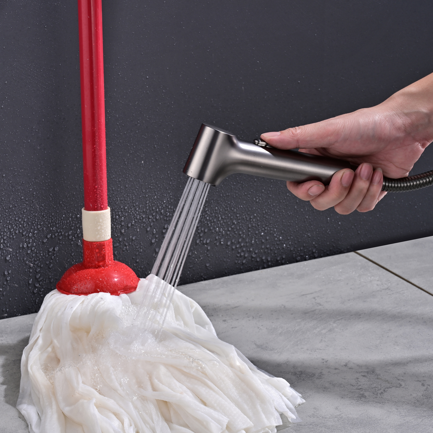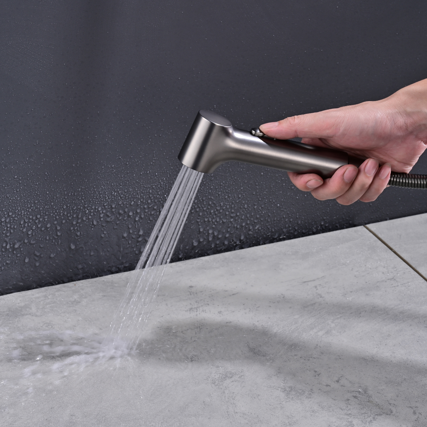 Гигиеническая лейка выполнена из ABS пластика. Держатель лейки расположен непосредственно на корпусе смесителя, обеспечивая удобство использования и предотвращая случайное падение лейки.