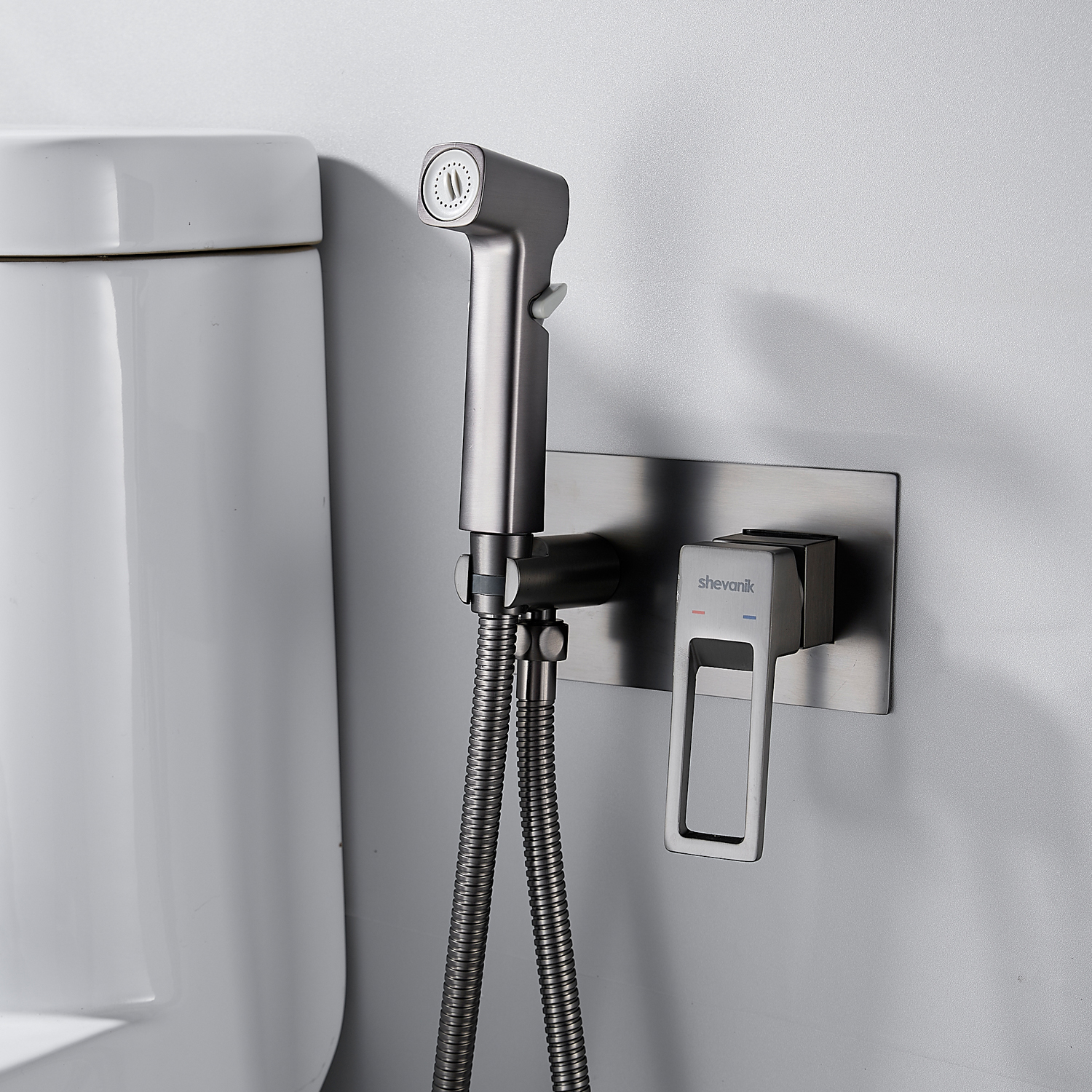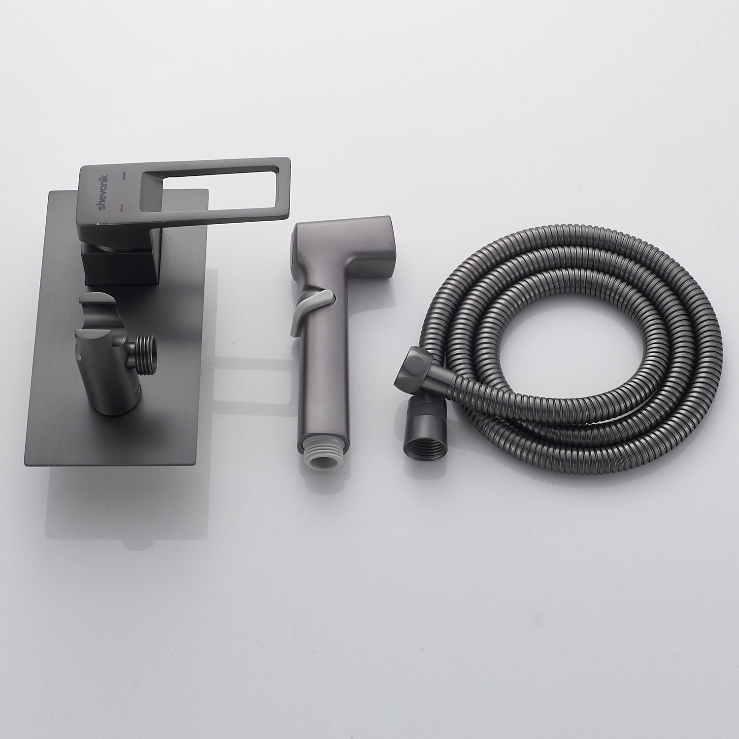 Гигиенический душ со смесителем Shevanik S6805T, оружейная сталь
