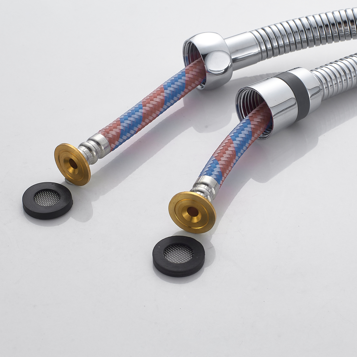 Лейка гигиенического душа выполнена из ABS пластика, её держатель удобно расположен на корпусе смесителя, что способствует удобному использованию. В комплект входит шланг в двойной металлической оплетке длиной 120 см, который отличается надежностью и защищает от повреждений.