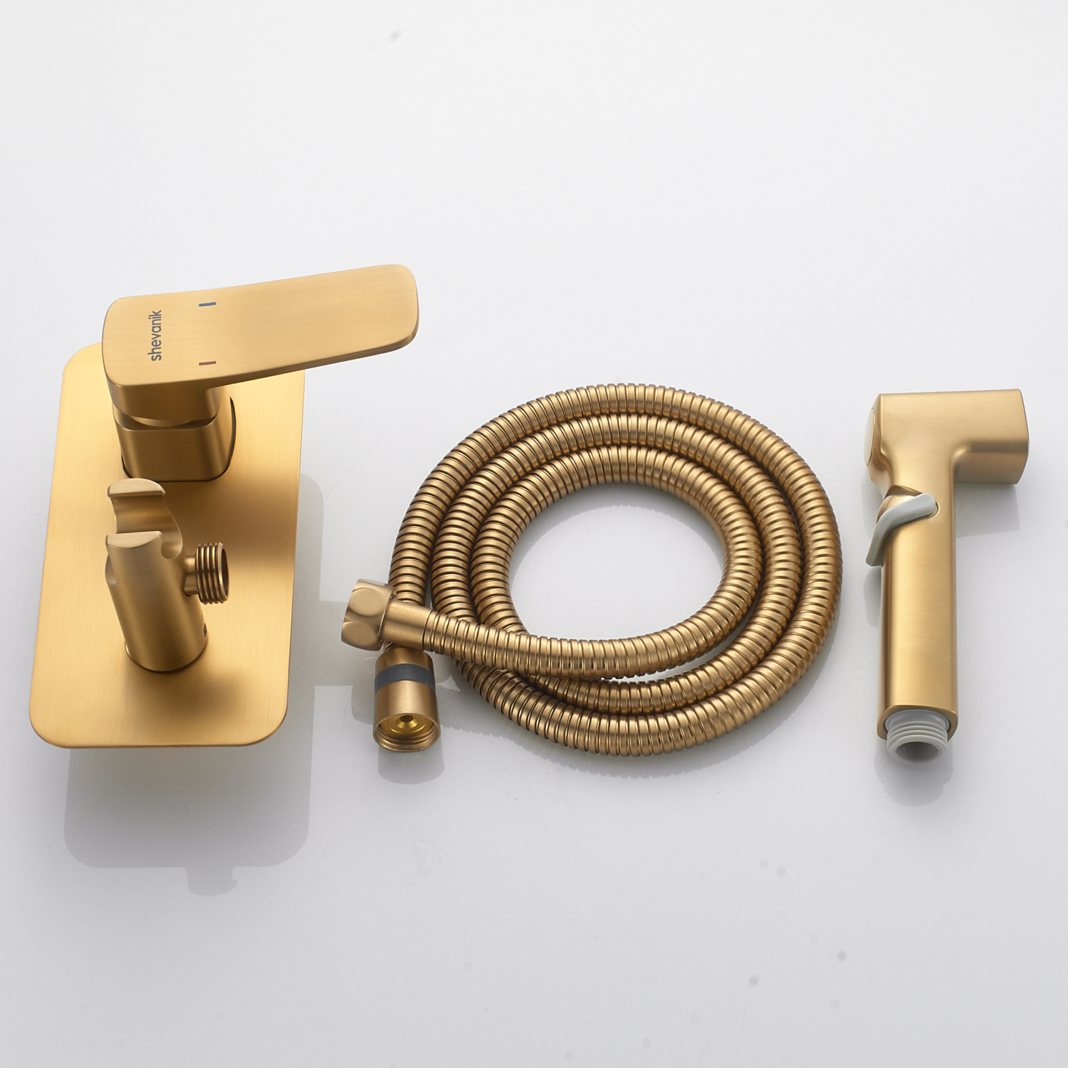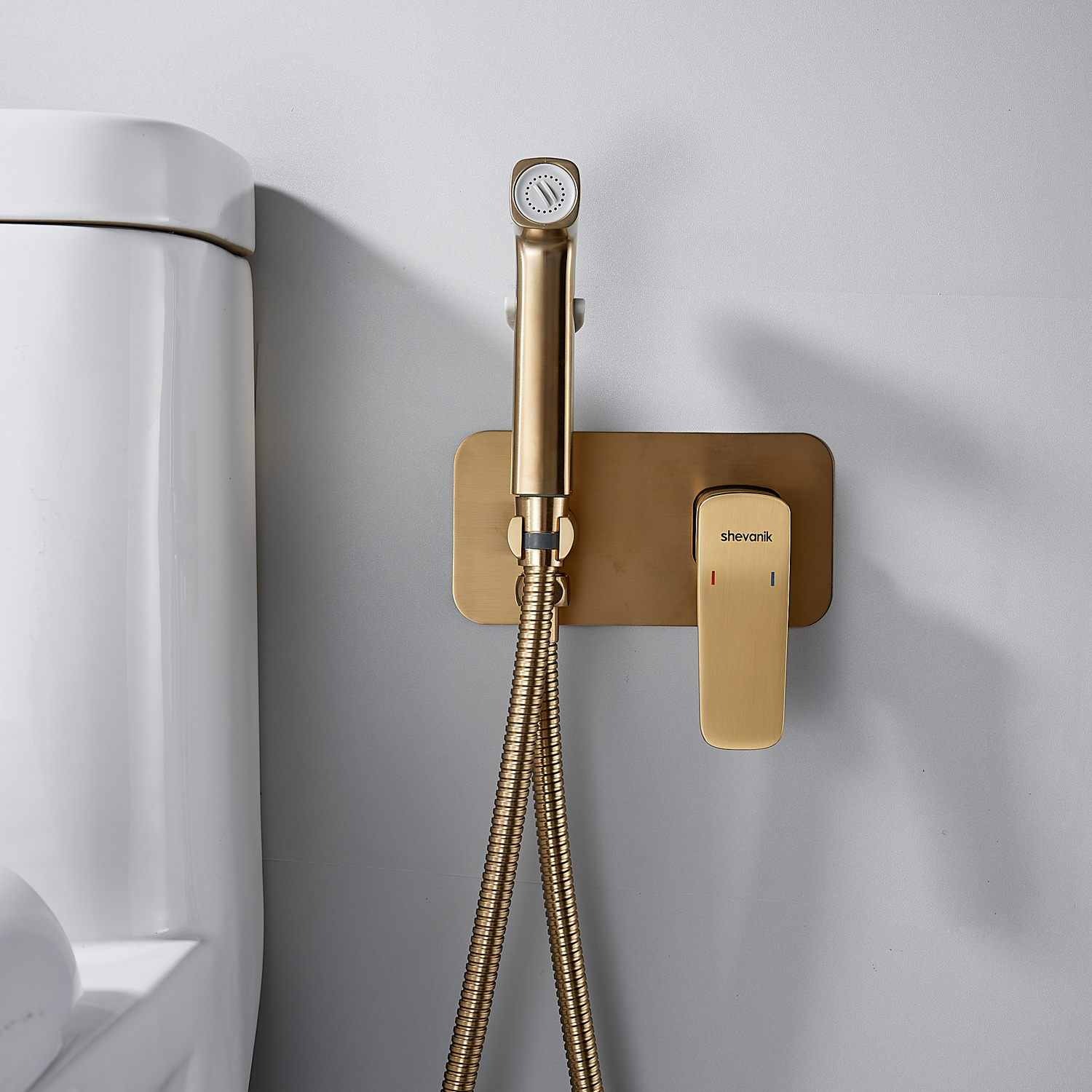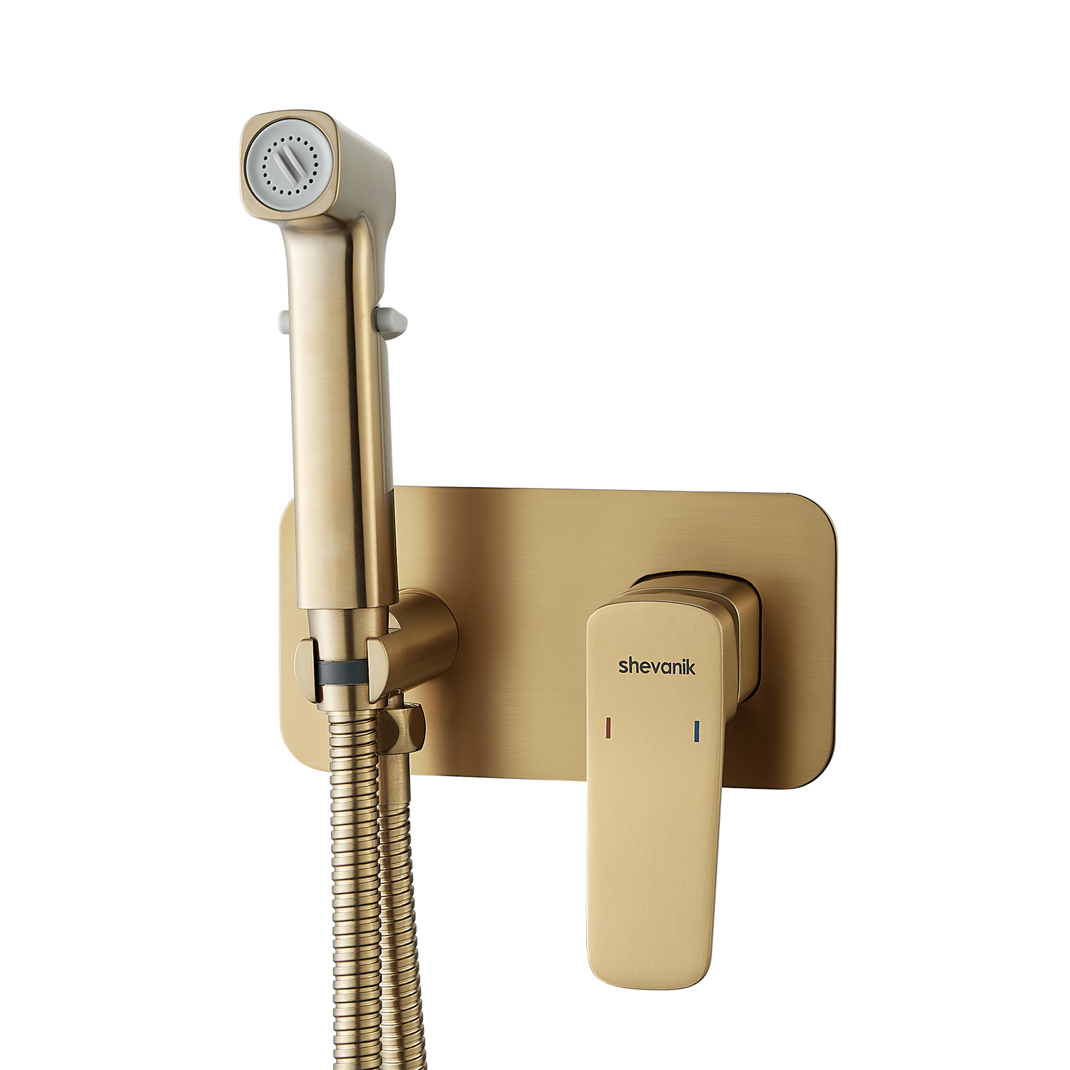 Гигиенический душ со смесителем Shevanik S9905G в цвете "золотой сатин" (матовое полированное золото) предназначен для скрытого монтажа, благодаря чему сохраняется эстетичный вид ванной комнаты. Изготовлен из надёжной латуни, что обеспечивает долговечность и устойчивость к коррозии. Управление осуществляется с помощью керамического картриджа и рычажного механизма, гарантируя плавную и точную регулировку воды.