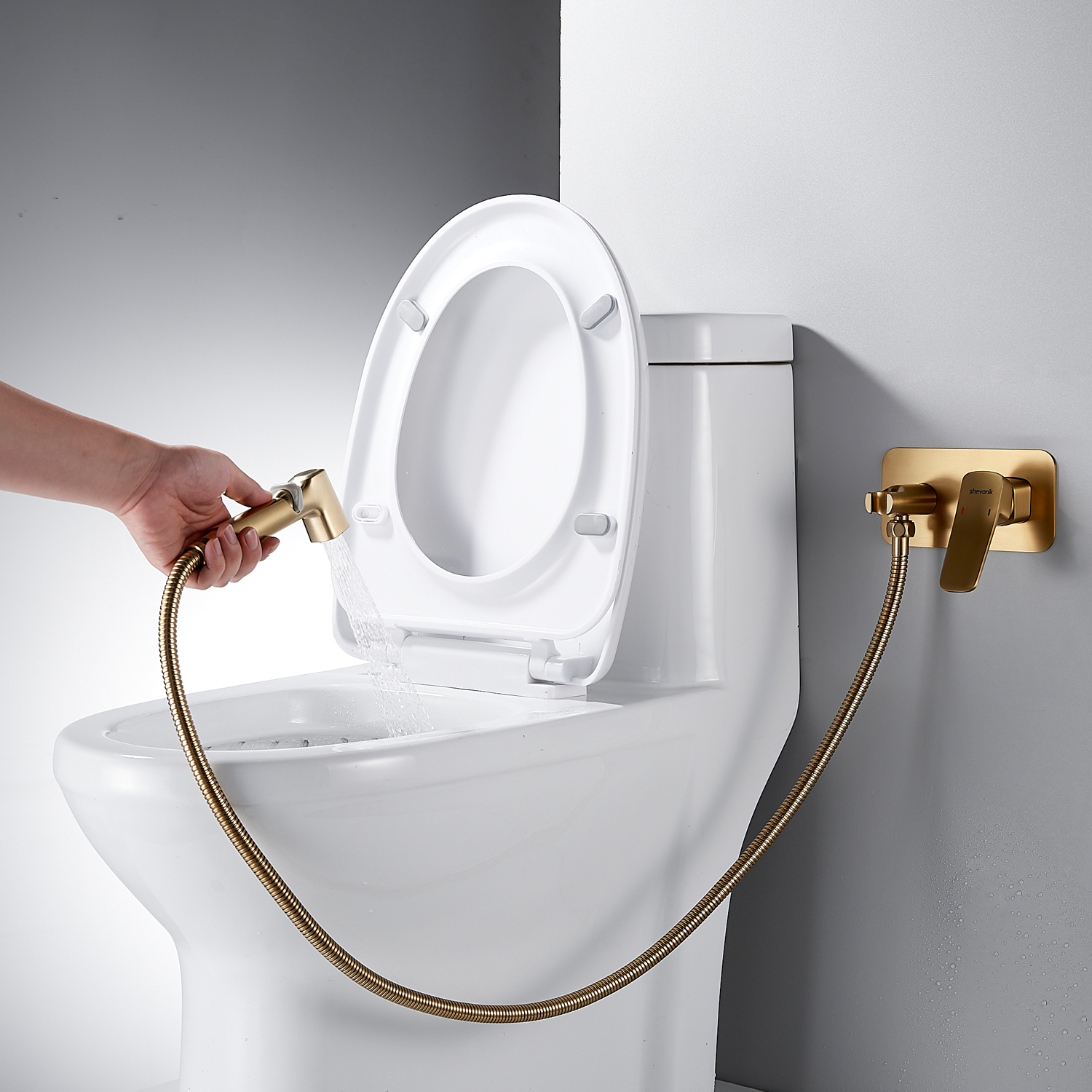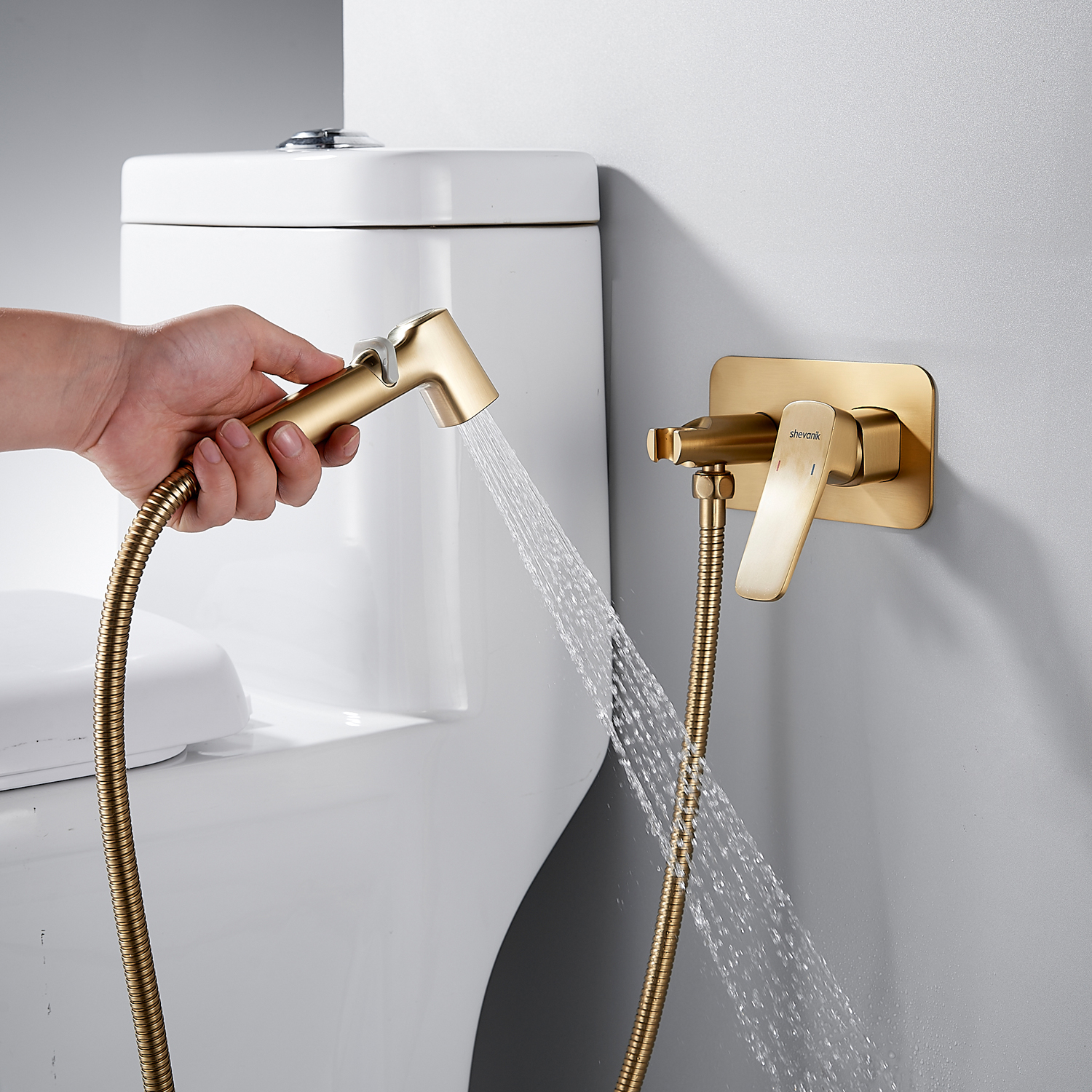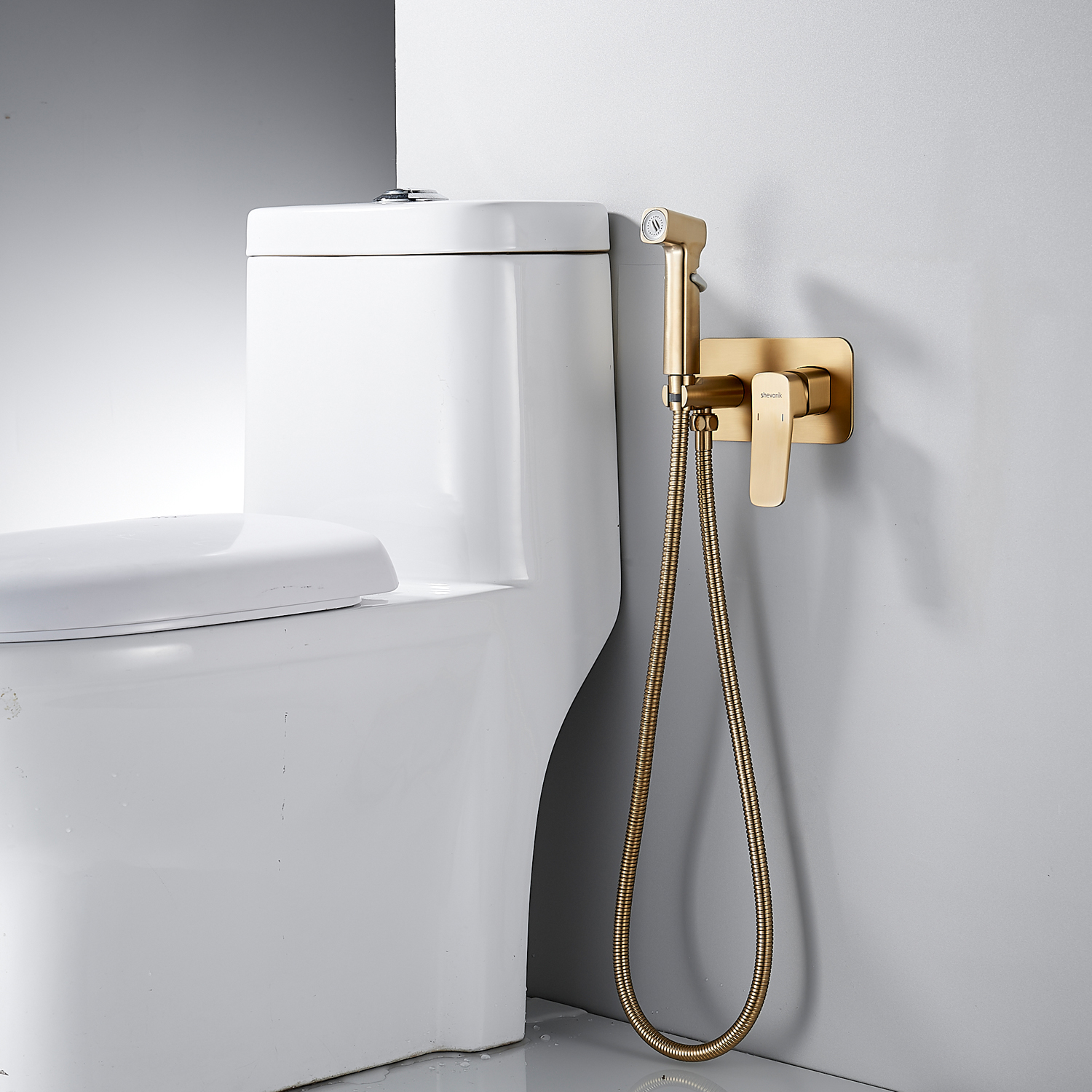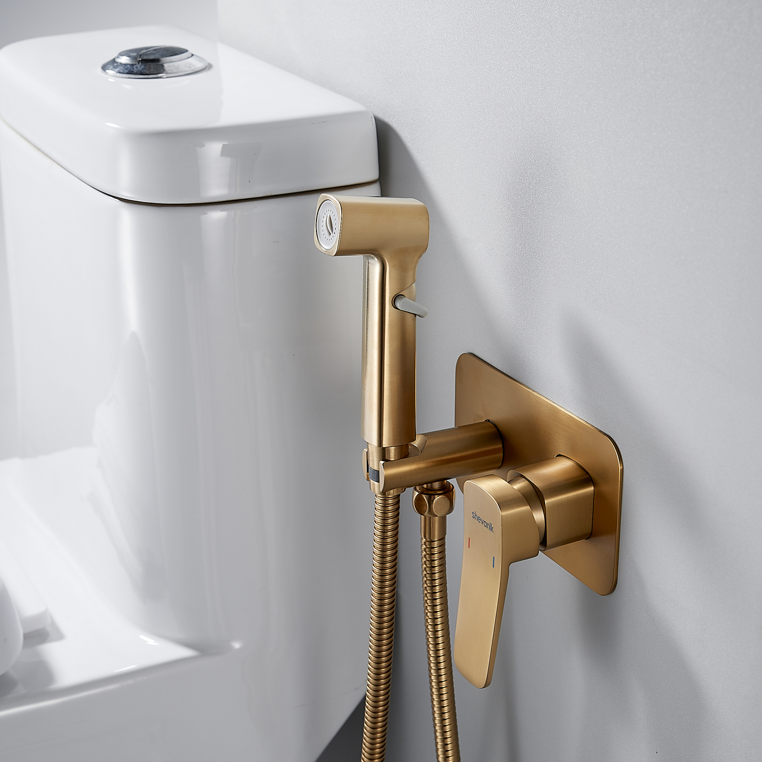 Гигиенический душ со смесителем Shevanik S9905G в цвете "золотой сатин" (матовое полированное золото) предназначен для скрытого монтажа, благодаря чему сохраняется эстетичный вид ванной комнаты. Изготовлен из надёжной латуни, что обеспечивает долговечность и устойчивость к коррозии. Управление осуществляется с помощью керамического картриджа и рычажного механизма, гарантируя плавную и точную регулировку воды.