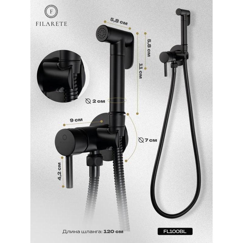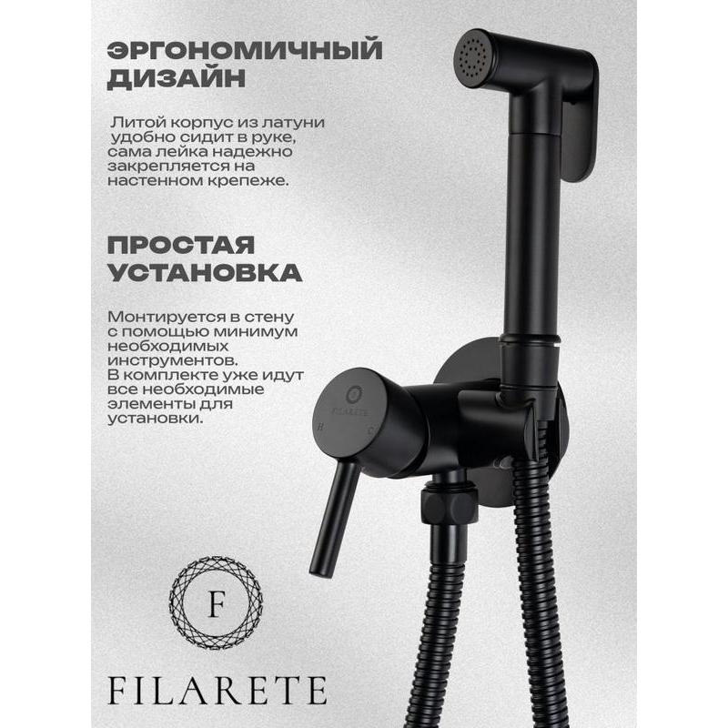 Гигиенический душ со смесителем встраиваемый FILARETE Roun FL100BL, черный