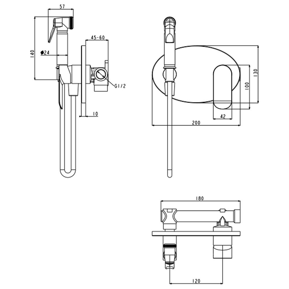 Гигиенический душ со смесителем встраиваемый Grocenberg GB003CR, хром