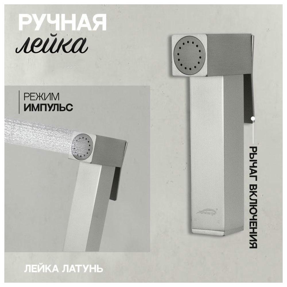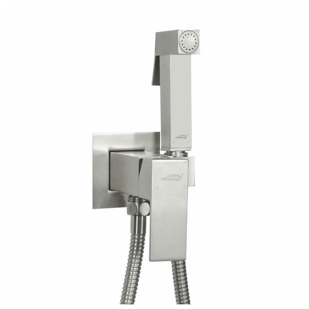 Смеситель встраиваемый с гигиеническим душем Hansberge H3077NK, никель.