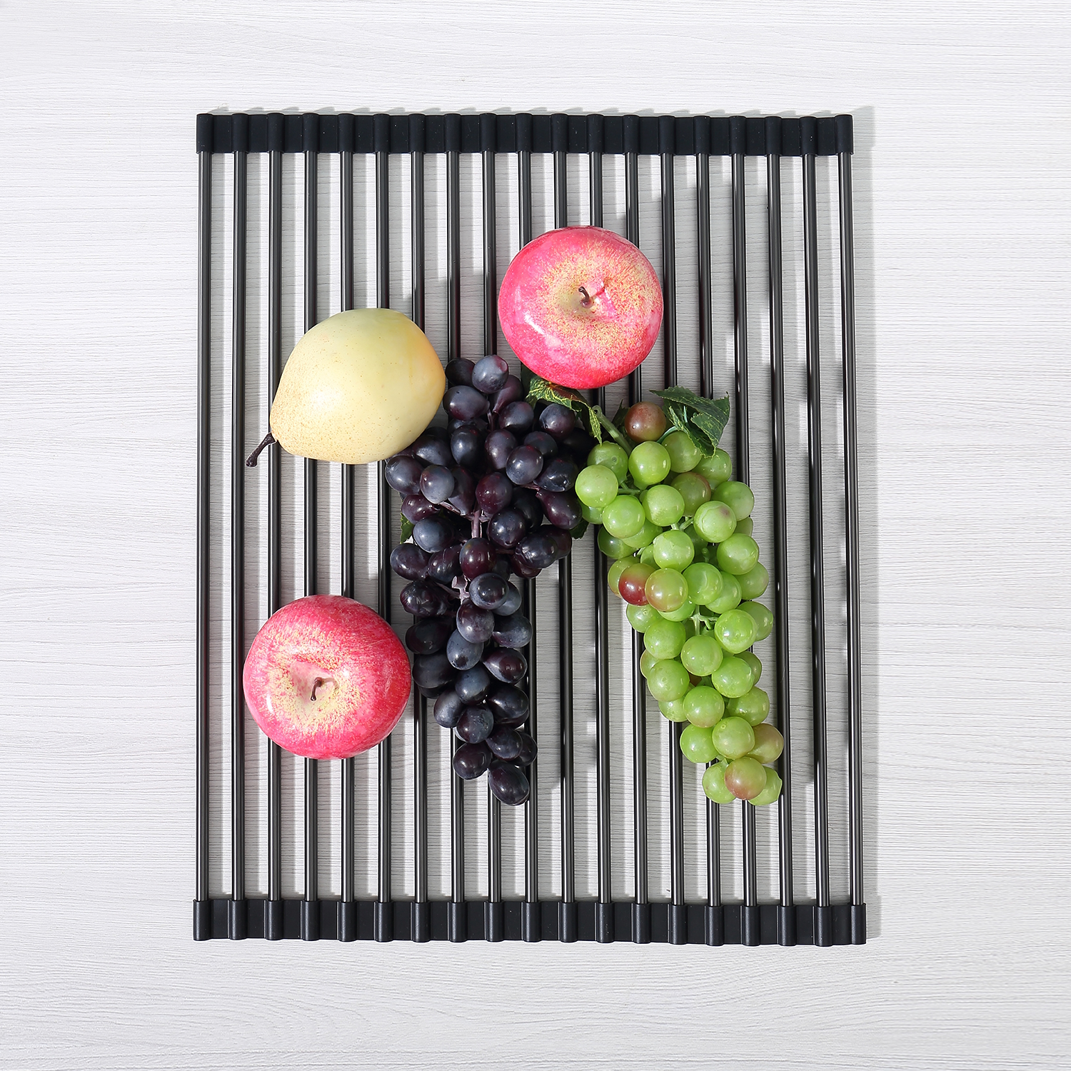 Ролл-мат из нержавеющей стали используются для мытья и просушивания посуды и продуктов. Устанавливаются на бортики мойки, можно использовать на крыле мойки или на кухонной столешнице в качестве подставки под горячую посуду. Гибкие силиконовые крепления по краям ролл-мата позволяют компактно свернуть его для хранения.