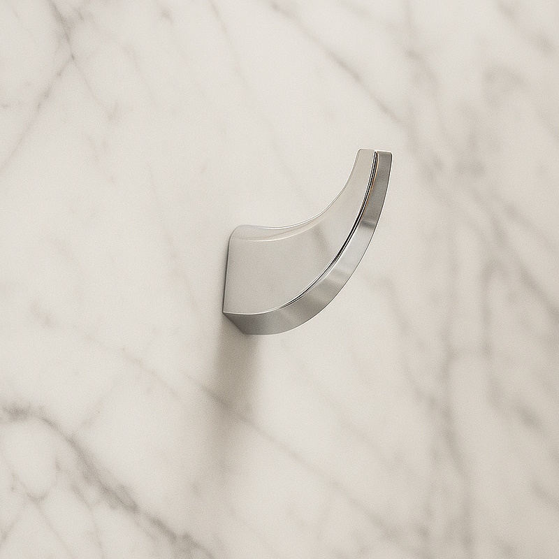 Современный крючок из сплава ZAMAK и нержавеющей стали SUS-201. Глянцевое антиследовое покрытие сохраняет идеальный вид, выдерживает вертикальную нагрузку до 5 кг. Прочный и надежный, легко монтируется с комплектными крепежами.