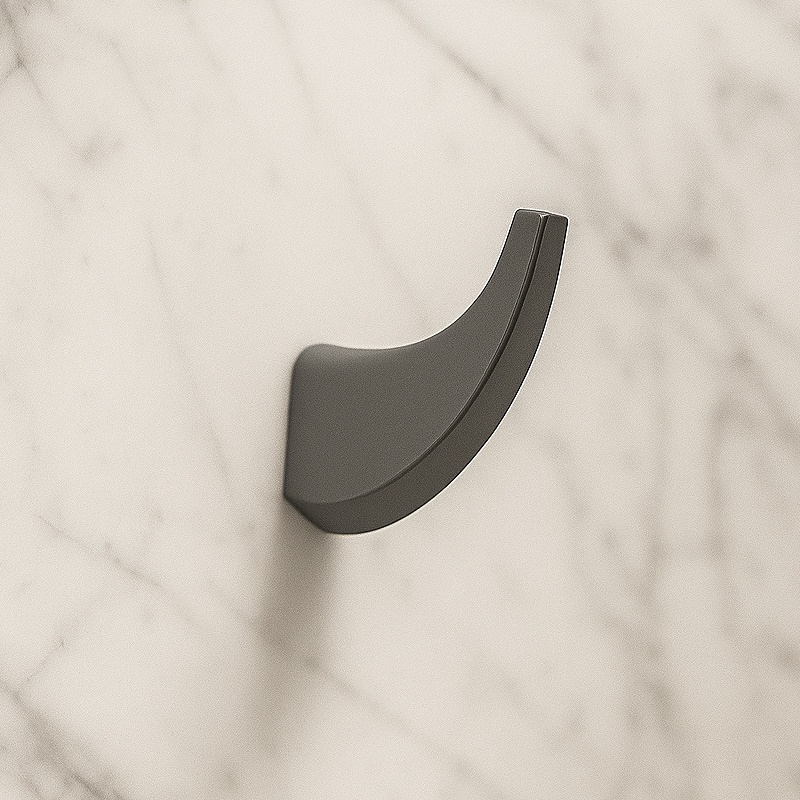 Элегантный крючок из ZAMAK + SUS-201 с антиследовой поверхностью. Надежно удерживает до 5 кг, сохраняет эстетичный вид без потёртостей. Простая установка с комплектом крепежа.