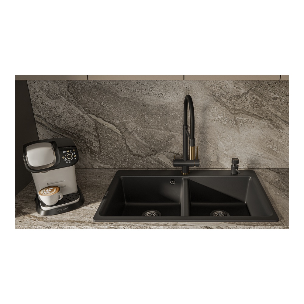 -Оттенок дозатора идеально сочетается с кухонными мойками и смесителями Rivelato