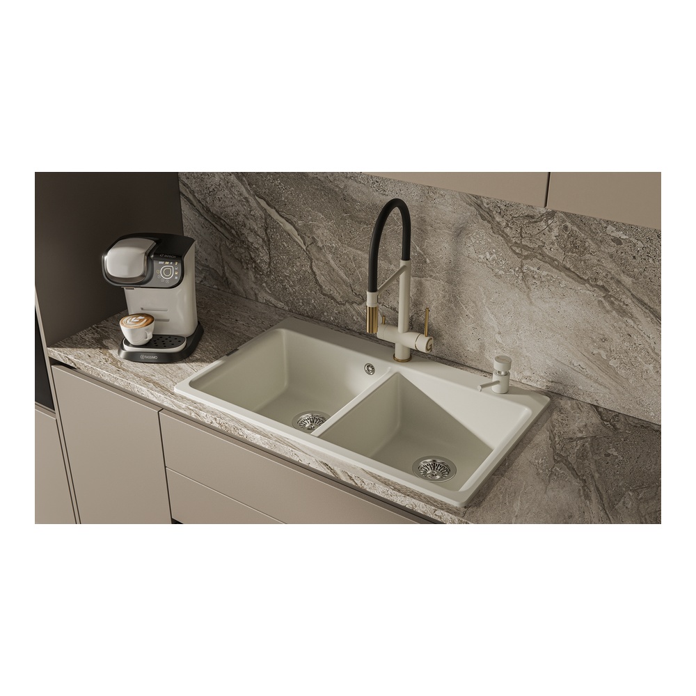 -Оттенок дозатора идеально сочетается с кухонными мойками и смесителями Rivelato