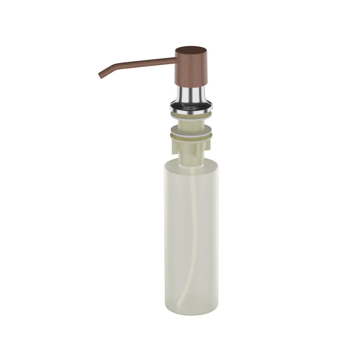 Дозатор ULGRAN предназначен для установки на кухонную мойку ULGRAN или на столешницу из искусственного камня толщиной не более 40 мм. Использование дозатора освобождает мойку и столешницу от бутылочек с моющим средством, делая кухню удобной и красивой. Дозатор ULGRAN позволяет с помощью лёгкого нажатия получать необходимое количество жидкости для мытья посуды, при этом важно, что дозатор заполняется моющим средством сверху. Пластиковая колба объемом 330 мл прикручивается к дозатору снизу столешницы один раз и в дальнейшем не откручивается.