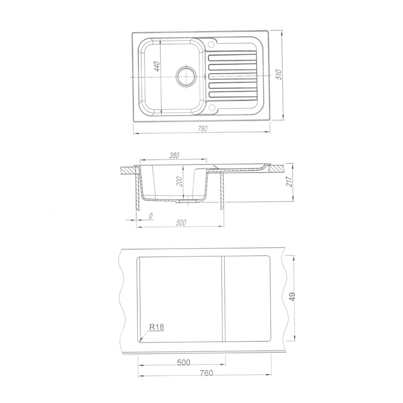 Габариты мойки: 78х51х21,7 см.