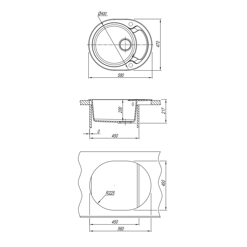 Мойка ШхДхВ: 58х47х21,7 см.