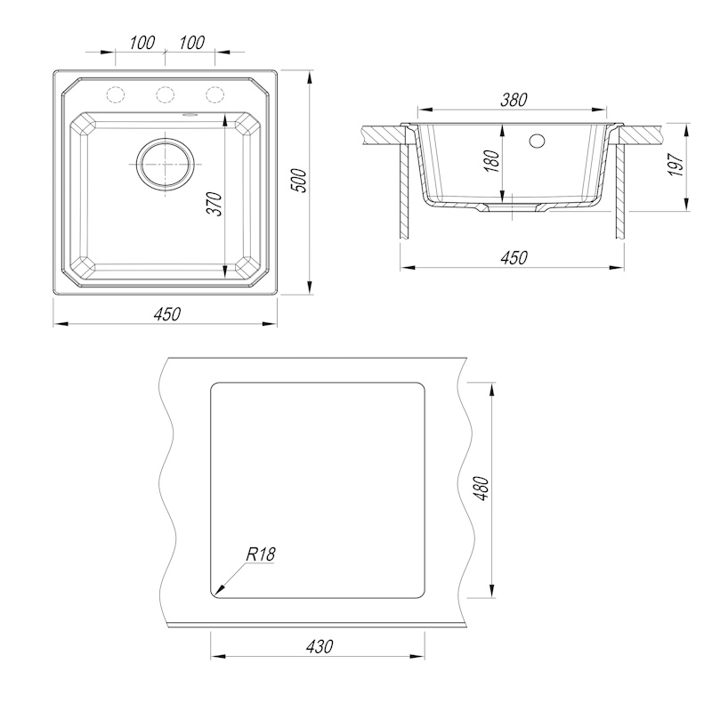 Габариты мойки: 45х50х19,7 см.
