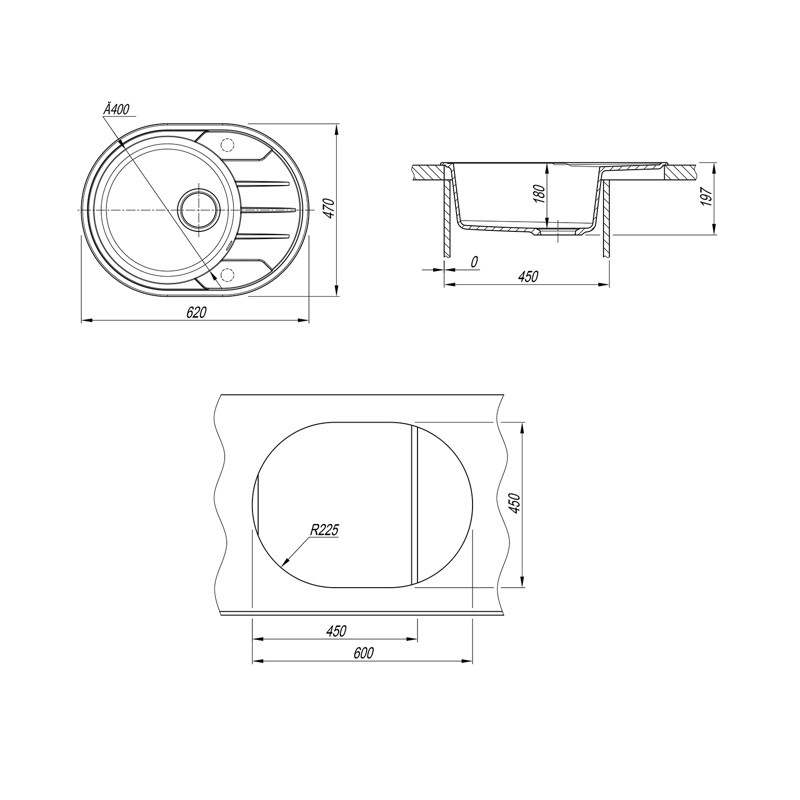 Мойка ШхДхВ: 62х47х19,7 см.