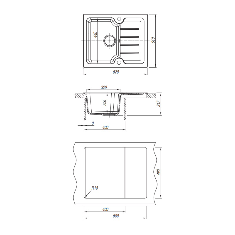 Мойка ШхДхВ: 62x51x21,7 см.
