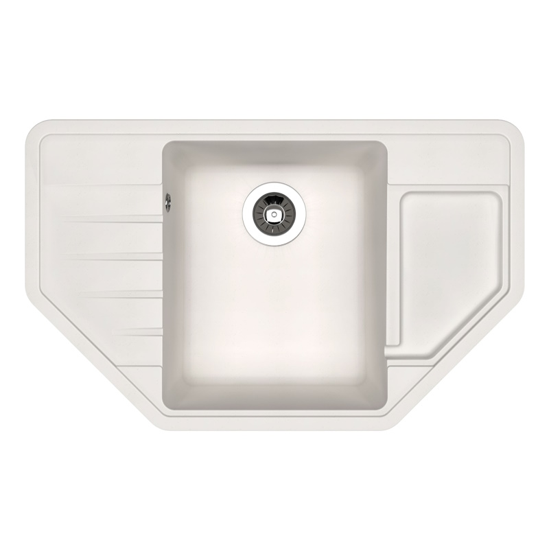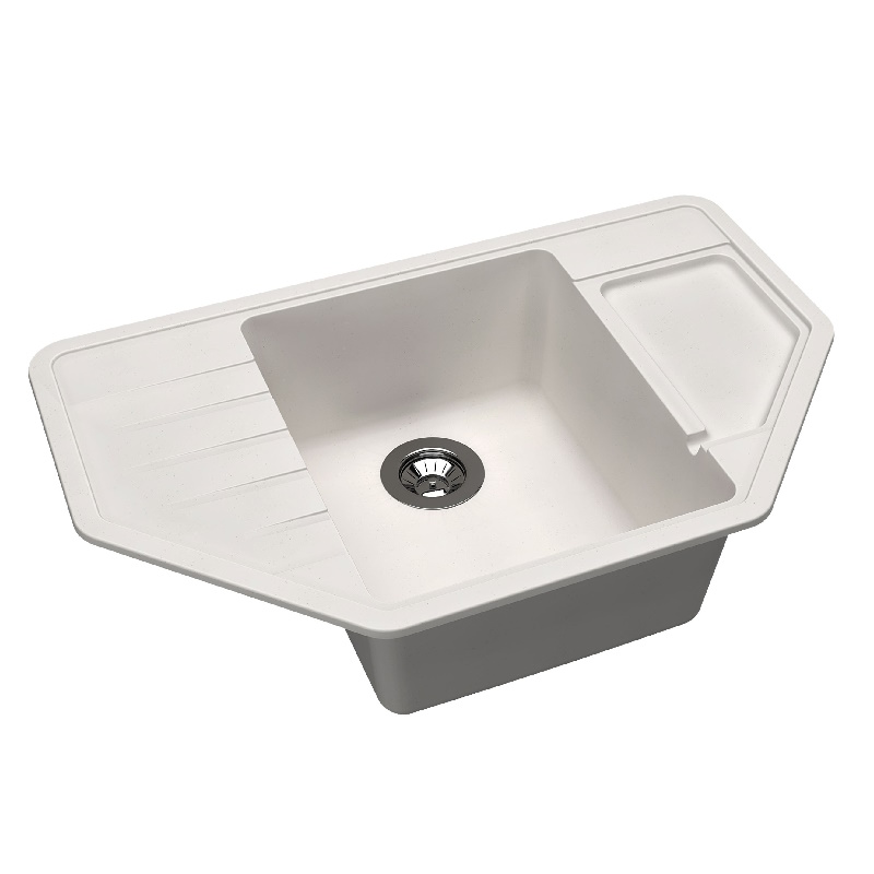 Угловая мойка с четкими контурами. Углубленное крыло. Гармоничный дизайн.