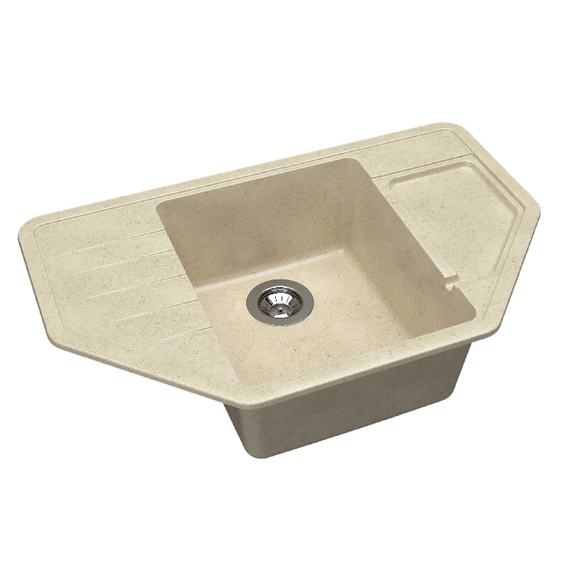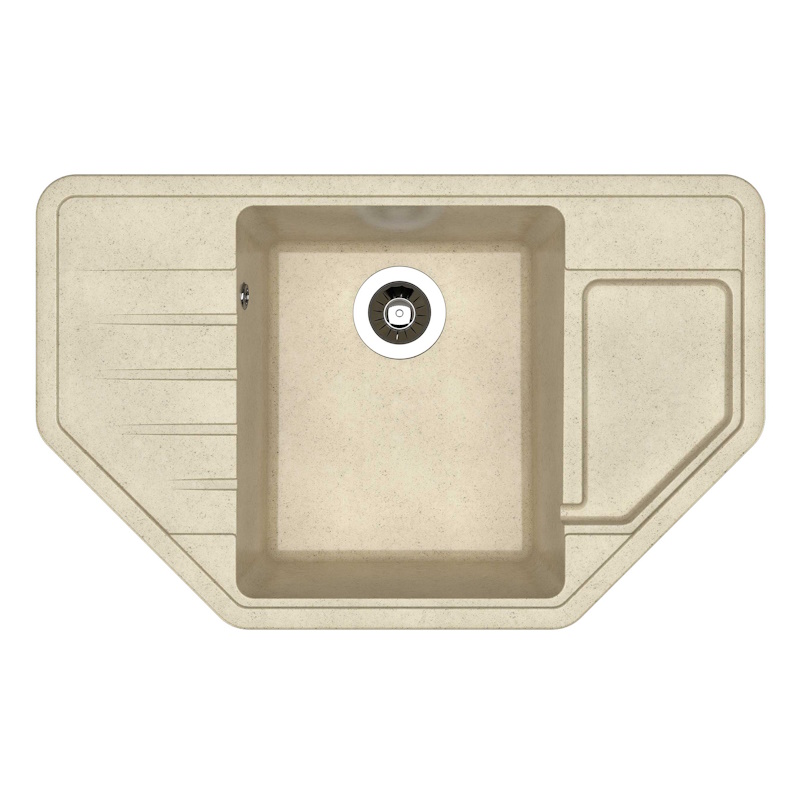 Угловая мойка с четкими контурами. Углубленное крыло. Гармоничный дизайн.