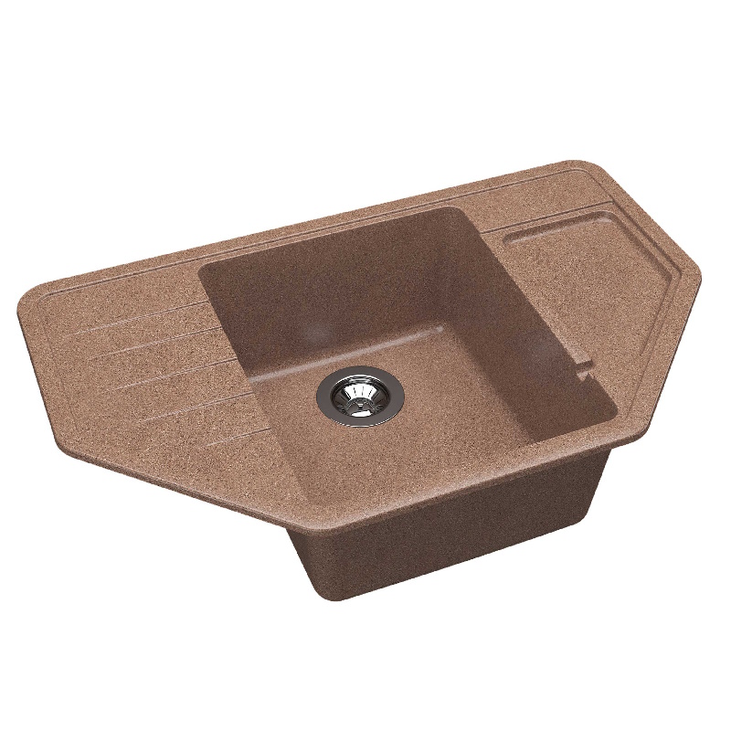 Угловая мойка с четкими контурами. Углубленное крыло. Гармоничный дизайн.