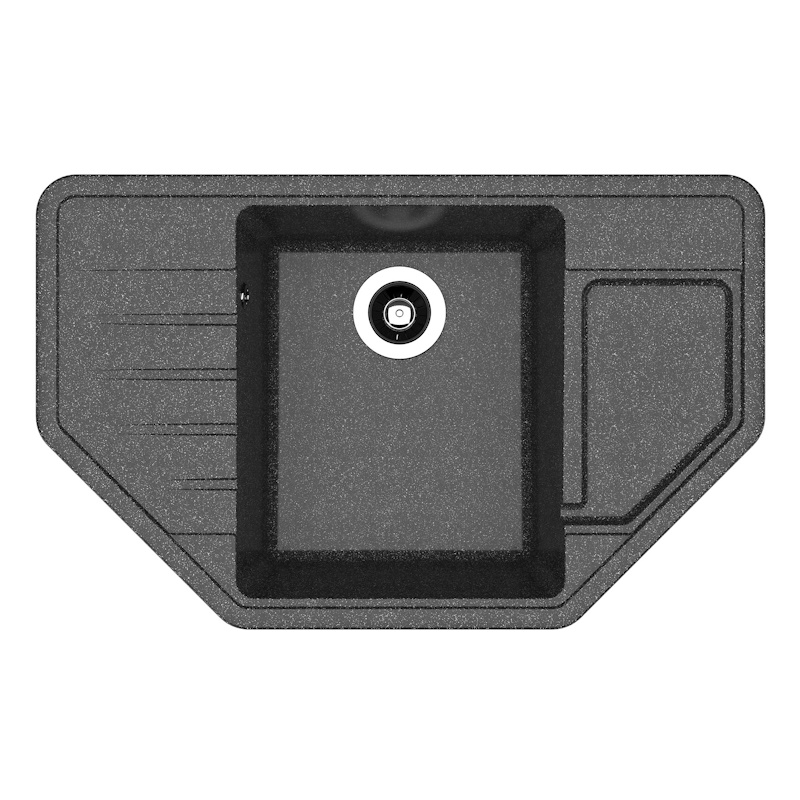 Угловая мойка с четкими контурами. Углубленное крыло. Гармоничный дизайн.