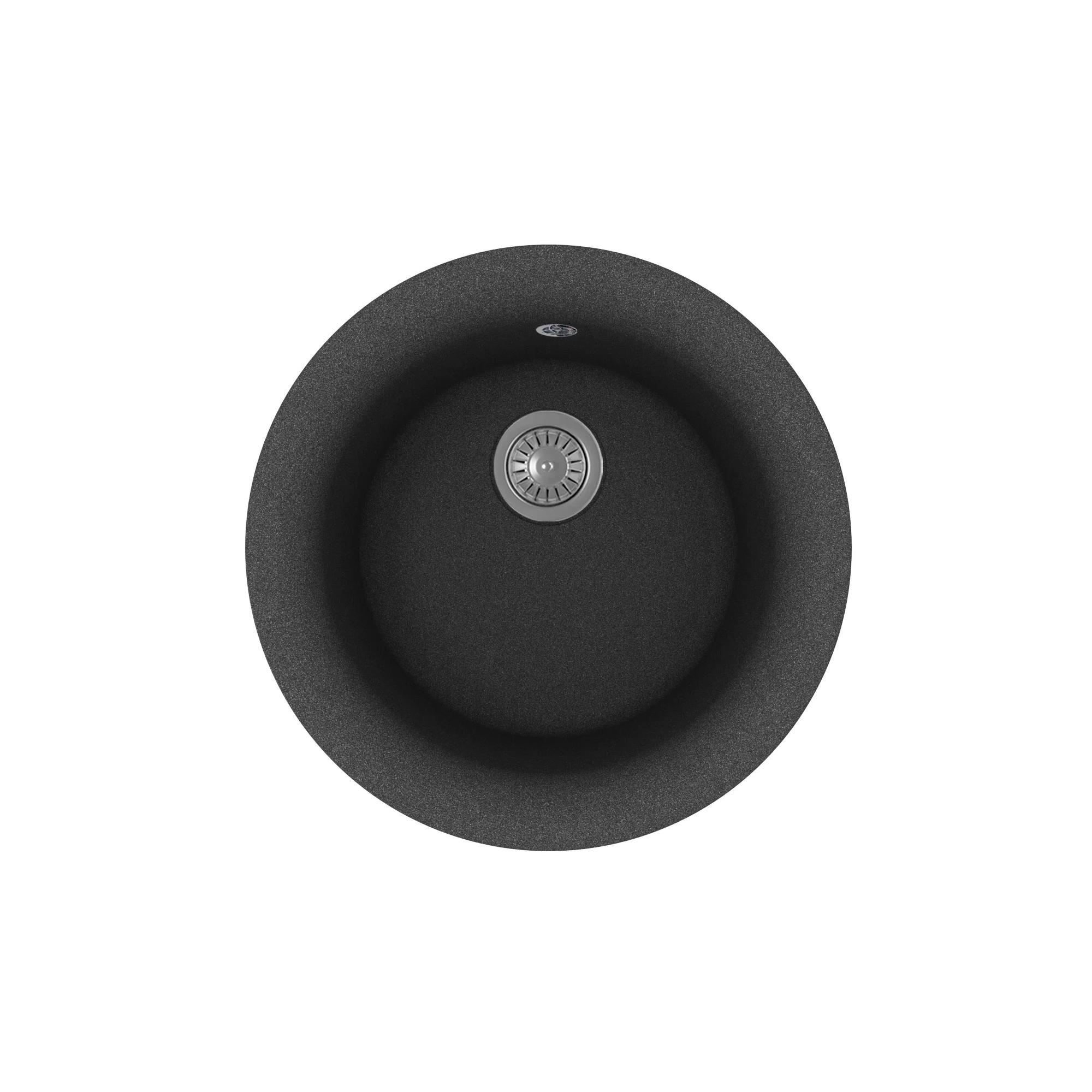 Круглая мойка с большой чашей для кухонного шкафа 45 см, напоминающая форму кувшина. Материал — кварцевый композит. Установка акcессуаров производится в столешницу.