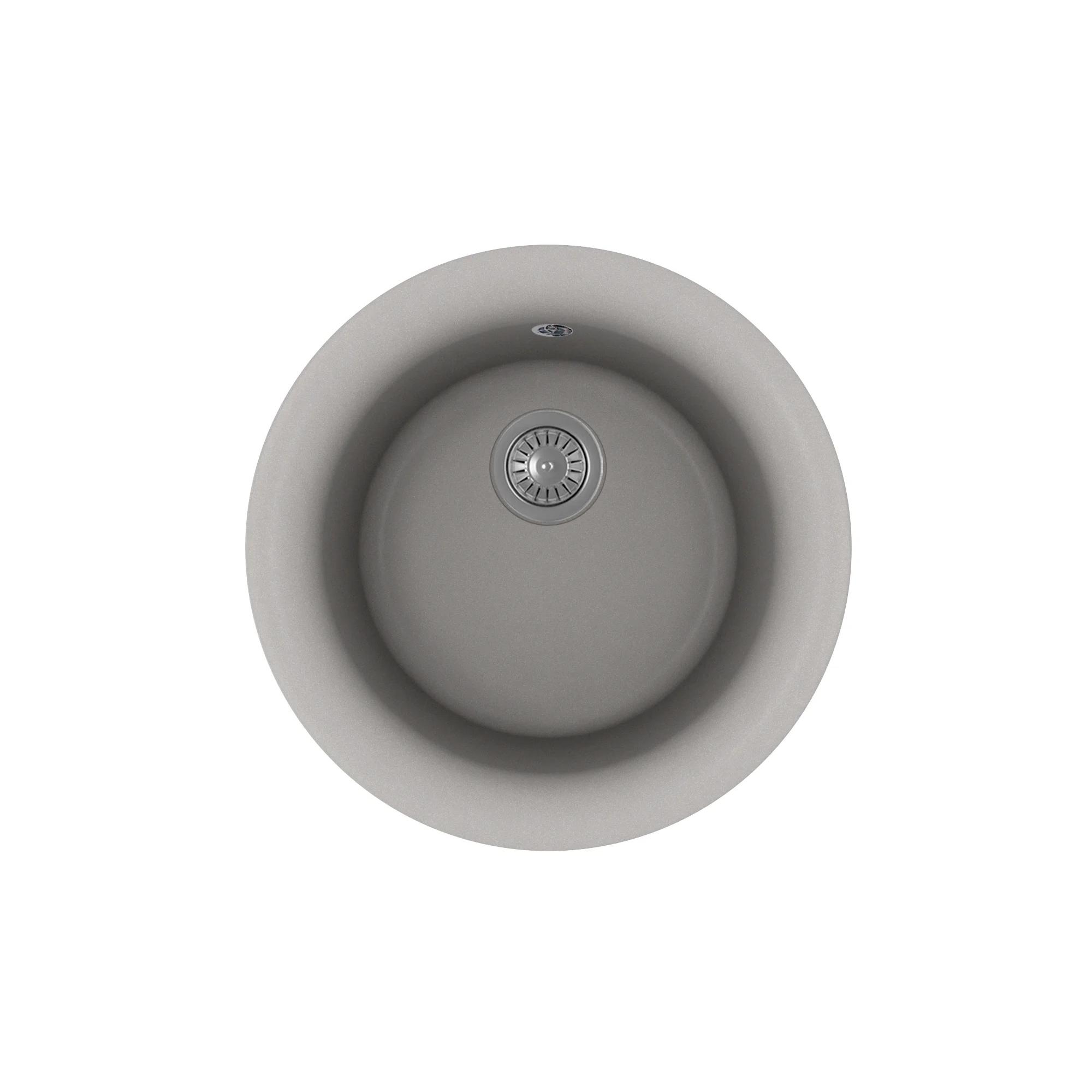 Круглая мойка с большой чашей для кухонного шкафа 45 см, напоминающая форму кувшина. Материал — кварцевый композит. Установка акcессуаров производится в столешницу.