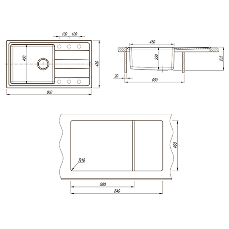 Намеченные отверстия под смеситель2