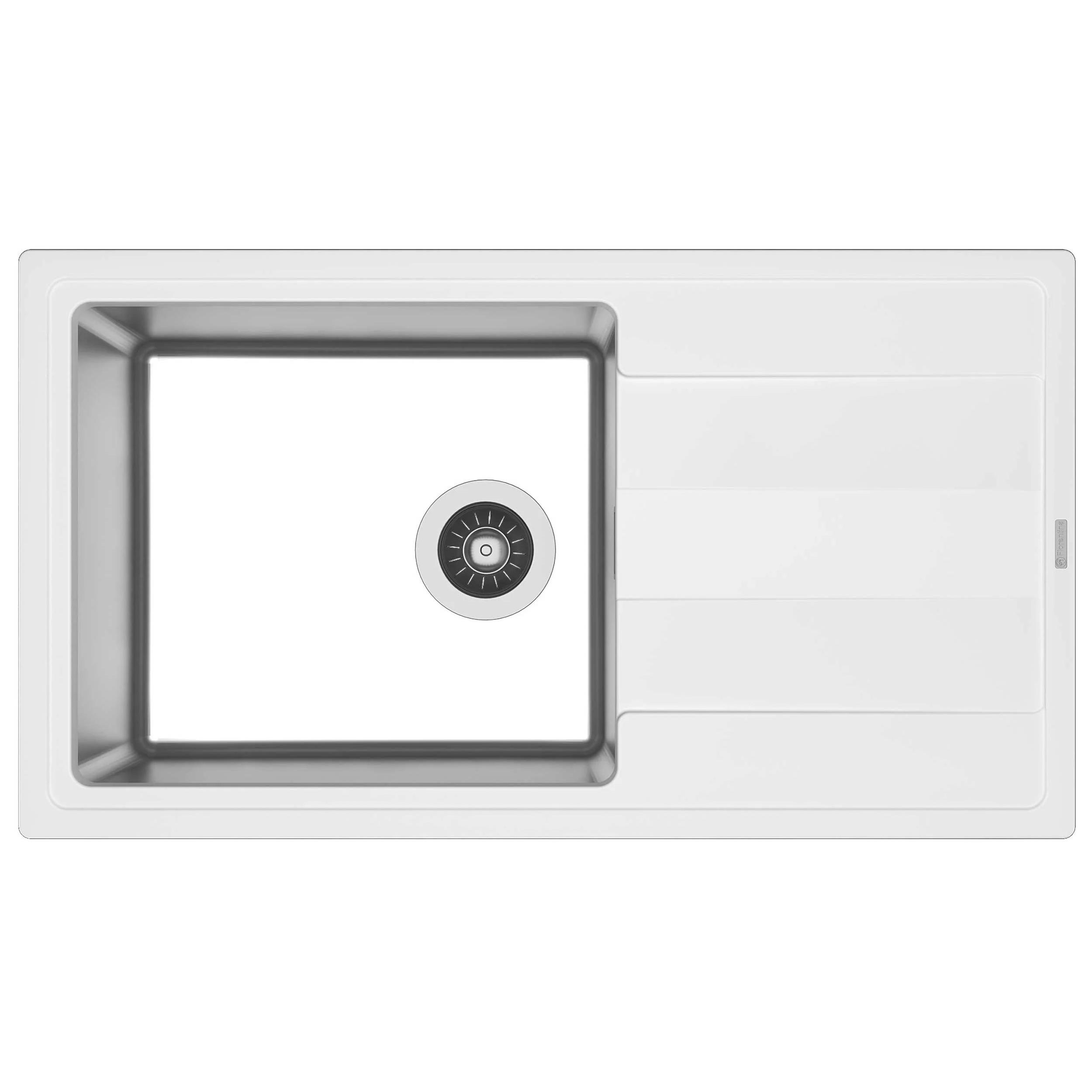 Мойка под шкаф 60 см. Материал столешницы мойки - кварцевый композит. Материал чаши мойки - нержавеющая сталь марки AISI 304, толщина 1 мм. В комплект входит отводная арматура с выпуском 3 ½ ” (D=90 мм) и переливом, набор крепежей, трафарет. Модель оборачиваемая.