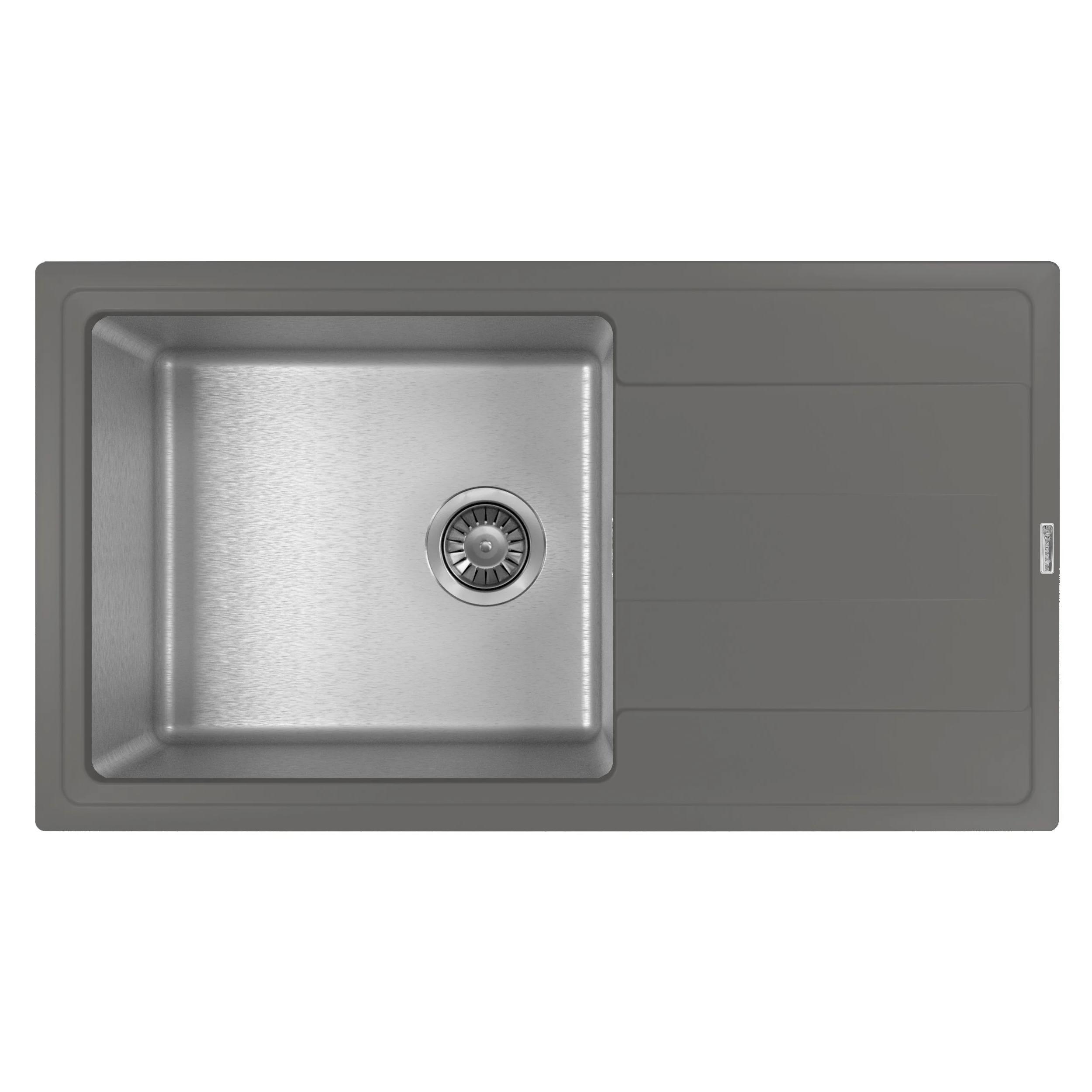 Мойка под шкаф 60 см. Материал столешницы мойки - кварцевый композит. Материал чаши мойки - нержавеющая сталь марки AISI 304, толщина 1 мм. В комплект входит отводная арматура с выпуском 3 ½ ” (D=90 мм) и переливом, набор крепежей, трафарет. Модель оборачиваемая.