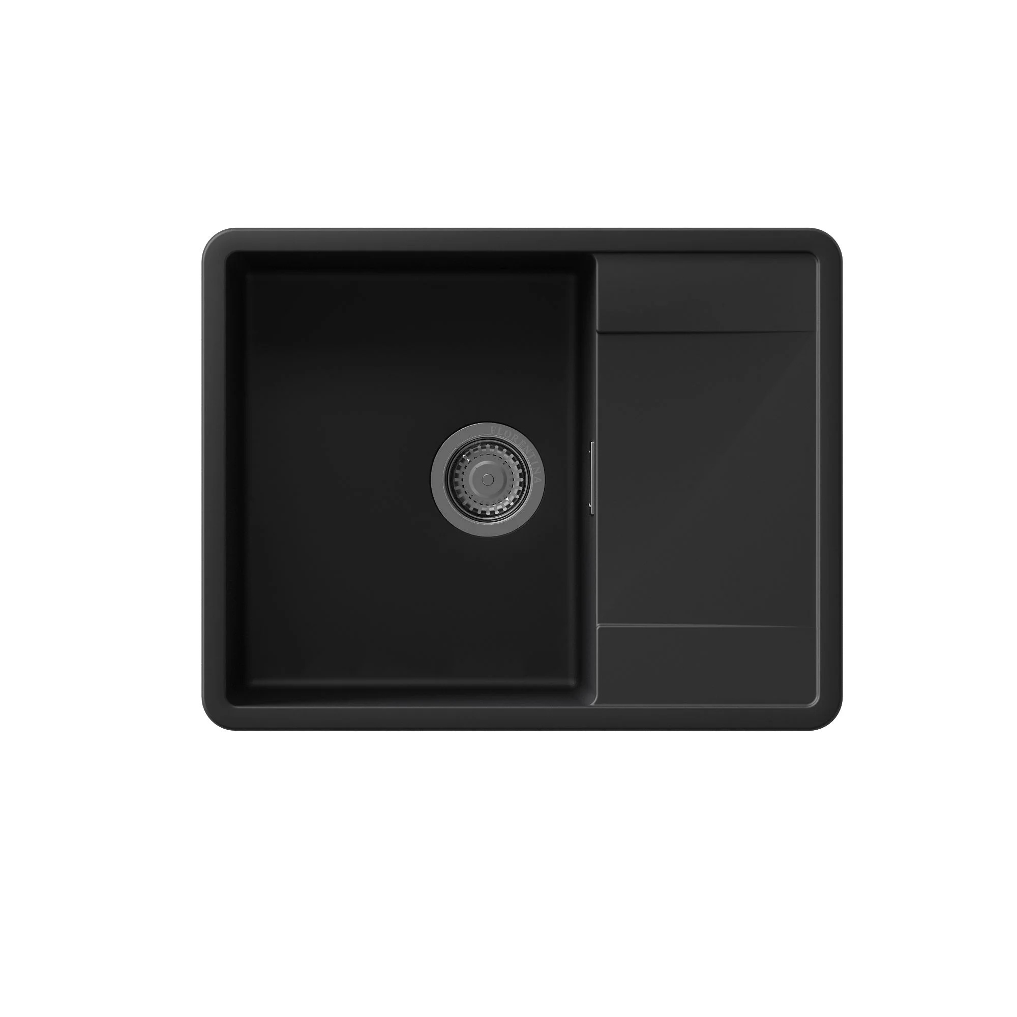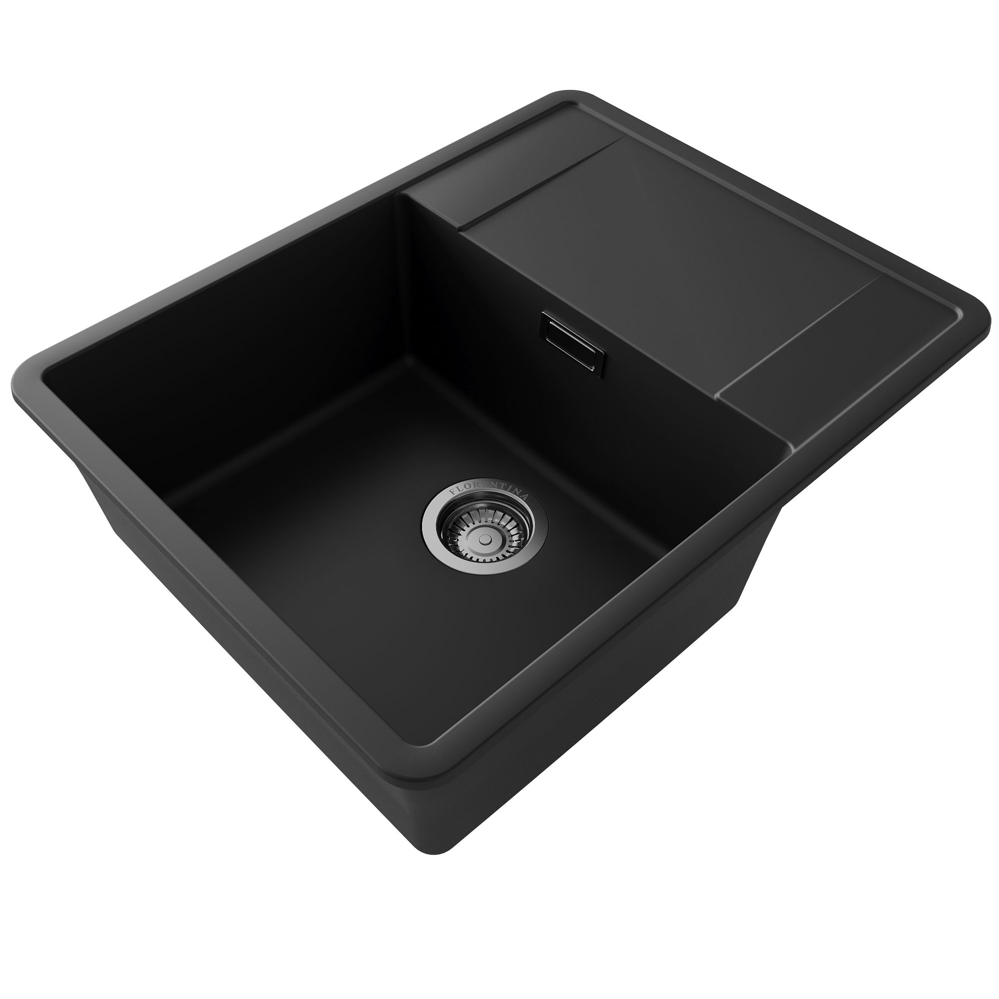Прямоугольная мойка с большой чашей для кухонного шкафа 50 см. Материал — кварцевый композит. Предусмотрены доп. отверстия для установки аксессуаров. Мойка реверсивная.
