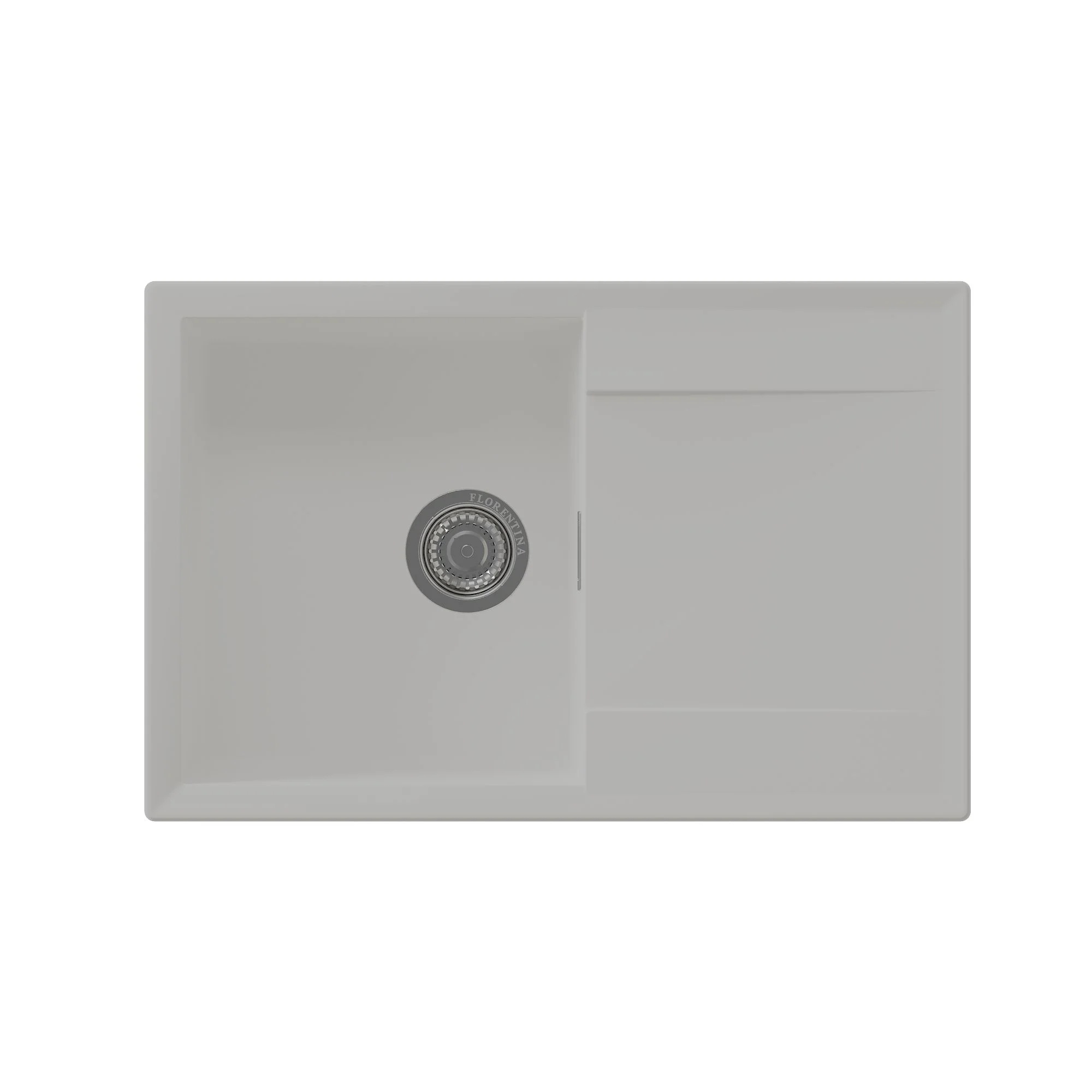 Прямоугольная мойка с большой чашей для кухонного шкафа 50 см. Материал — кварцевый композит. Предусмотрены доп. отверстия для установки аксессуаров. Мойка реверсивная.